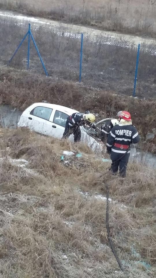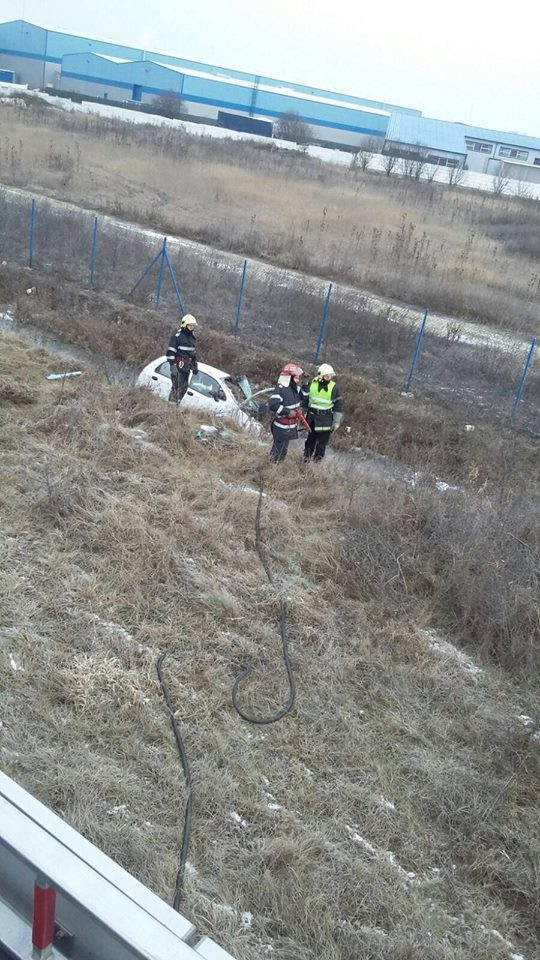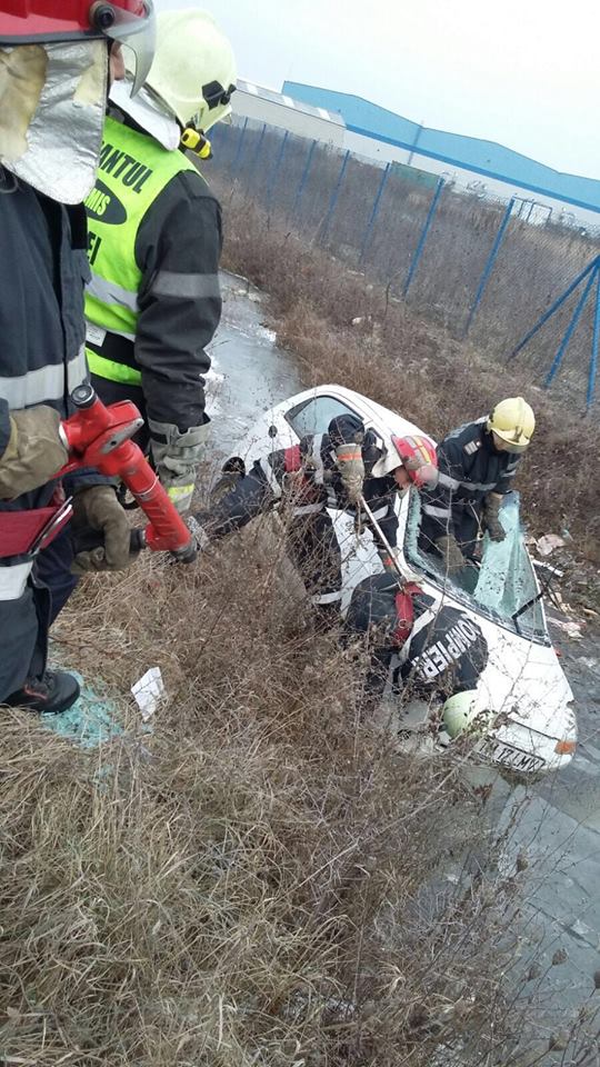 La sosirea echipajelor la fața locului a fost găsit un autoturism în șanțul cu apă de pe marginea drumului. Femeia a reușit singură să iasă din autoturism, însă s-a ales cu contuzii la nivelul membrelor superioare.