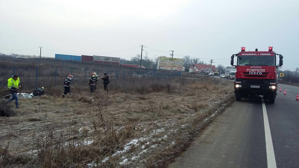 Accident de circulație în această dimineaţă în apropierea localităţii Remetea Mare. O femeie de 46 de ani care venea la Timişoara a pierdut controlul autoturismului, ajungând în șanț.