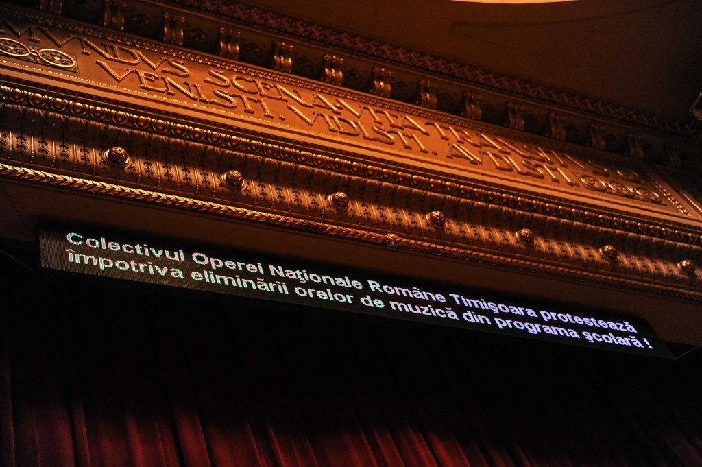 Protest la Opera Română din Timișoara! Duminică după-amiază, artiștii au jucat opereta “Silvia” cu banderole albe la braț.