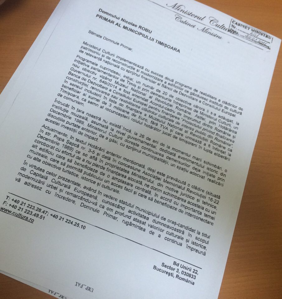Vești bune! Un milion de lei a fost alocat de către Ministerul Culturii pentru studiile de prefezabilitate și fezabilitate necesare construcţiei unui Muzeu al Revoluţiei la Timişoara.