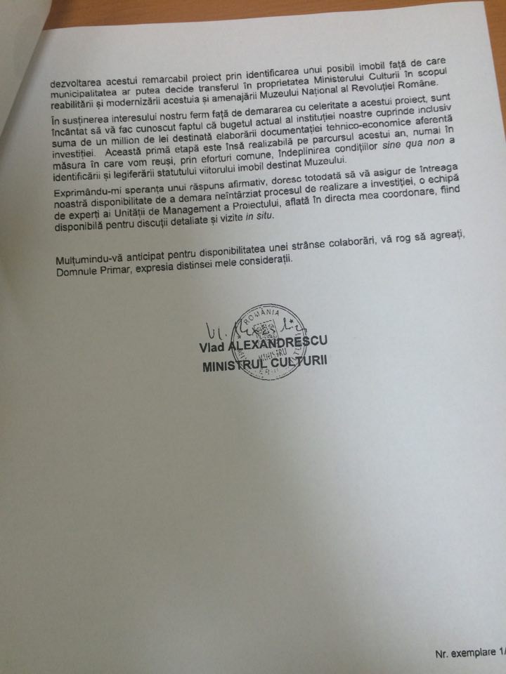 1. Muzeul Revolutiei Romane din decembrie 1989 trebuie sa fie parte a Muzeului de Istorie recenta a Romaniei. Acest muzeu nu trebuie, insa, lasat, insa, nici la cheremul unui muzeu de tip SRL, cum este muzeul luil Traian Orban (care ar trebui sa se integreze in Muzeul de Istorie recenta a Romaniei), si care, la rindul sau, trebuie sa includa si perioada post-revolutionara a Timisoarei si a Romaniei, pina in prezent. A lasa proiectarea unui asemenea muzeu la cheremul unui edil des-creierat, cum este actualul Primar al Timisoarei, incult si mancurt, care a amplasat pocitaniile de tip kitsch care slutesc, in prezent, piete centrale al Timisoarei, ar fi o alta aberatie, care va evidentia, in timp, faptul ca „politica culturala ” a lui N.Robu este, de fapt, o batjocorire a conceptului de politica culturala, comisa de un specimen politruc actual (caracteristic perioadei de criza cronica