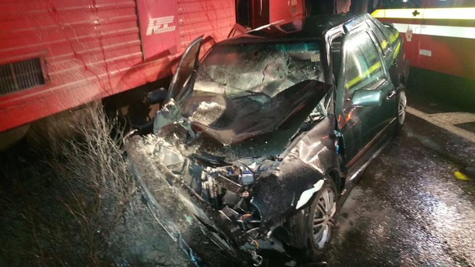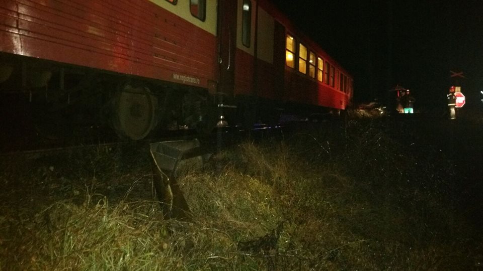 Grav accident noaptea trecută în Timiș. Patru persoane au ajuns la spital, după ce un șofer nu s-a asigurat la trecerea de cale ferată și a fost lovit din plin de un tren personal.