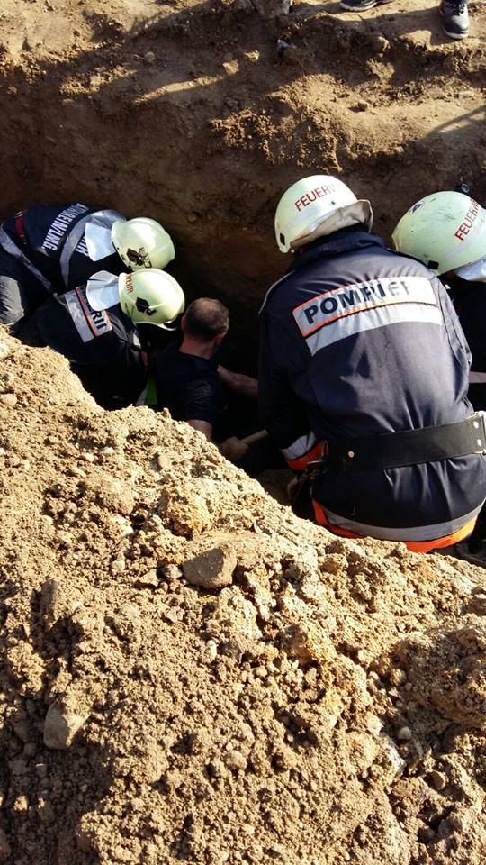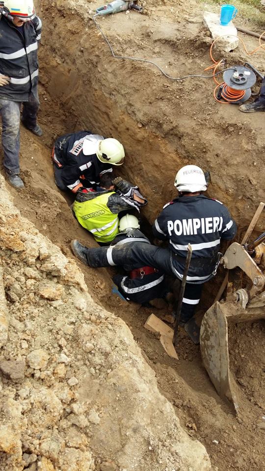 La fața locului s-a deplasat un echipaj, cu șase subofițeri, o ambulanță SAJ și un echipaj al Poliției. S-a constatat că victima și-a prins picioarele sub țevile de canalizare, fiind acoperită de nisip până la brâu. Pompierii au acționat imediat pentru degajarea victimei. Bărbatul era în stare stabilă, conștient, ulterior fiind preluat de echipajul SAJ.