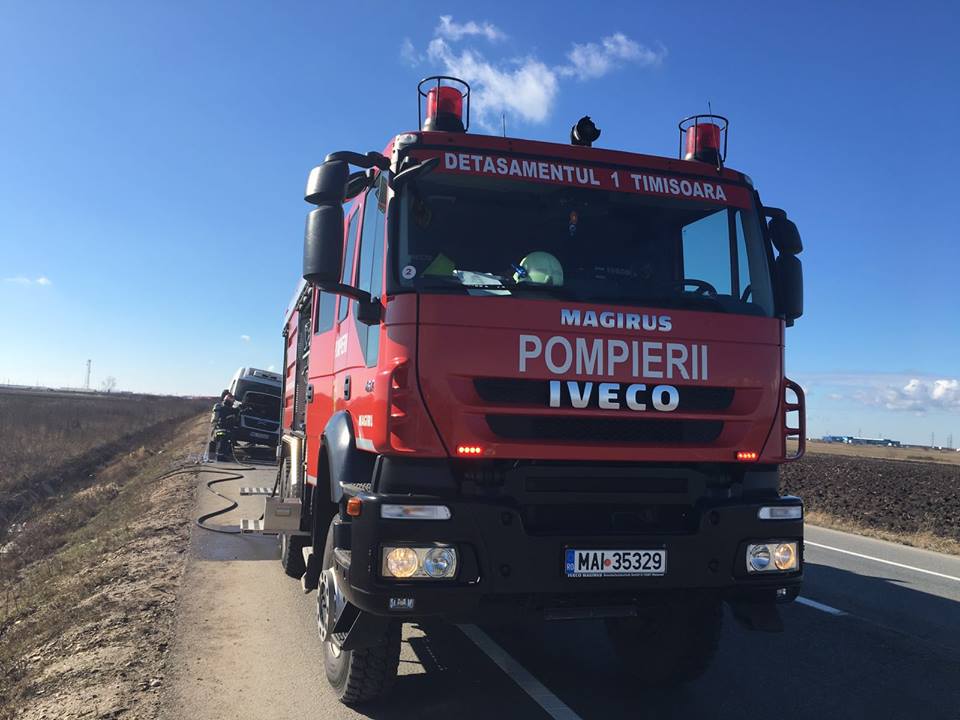 Totul s-a petrecut în zona Calea Aradului. La fața locului s-a deplasat, din cadrul Detașamentului 1 Pompieri Timișoara, o autospecială de lucru cu apă și spumă, un ofițer și șase subofițeri.