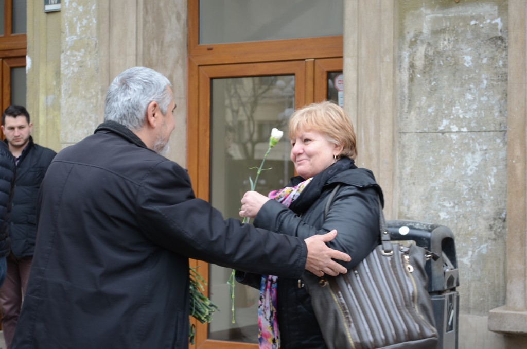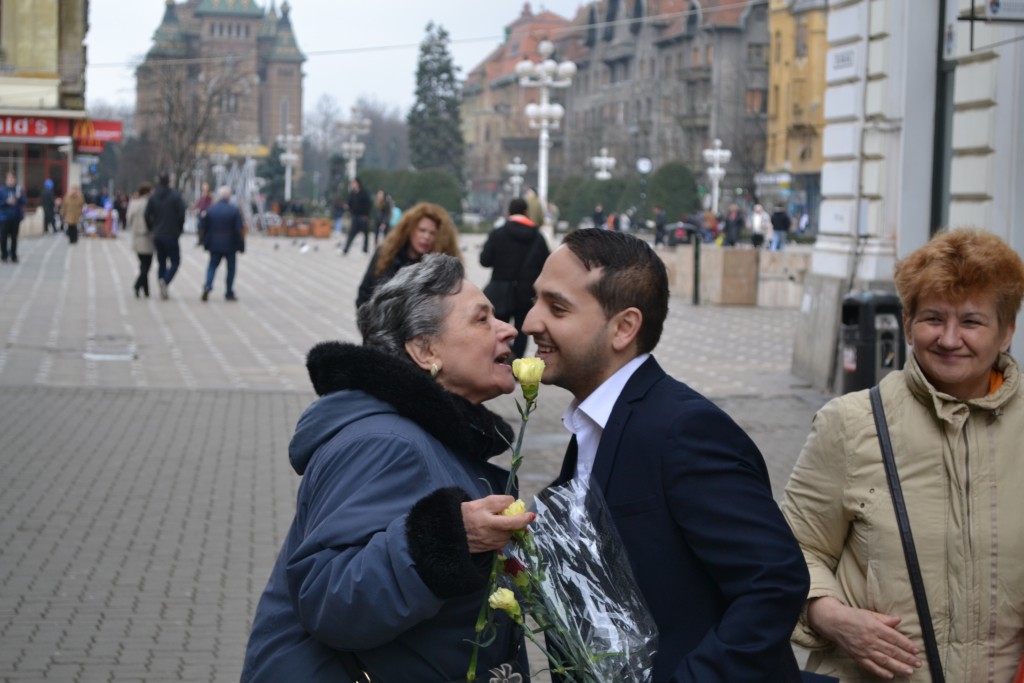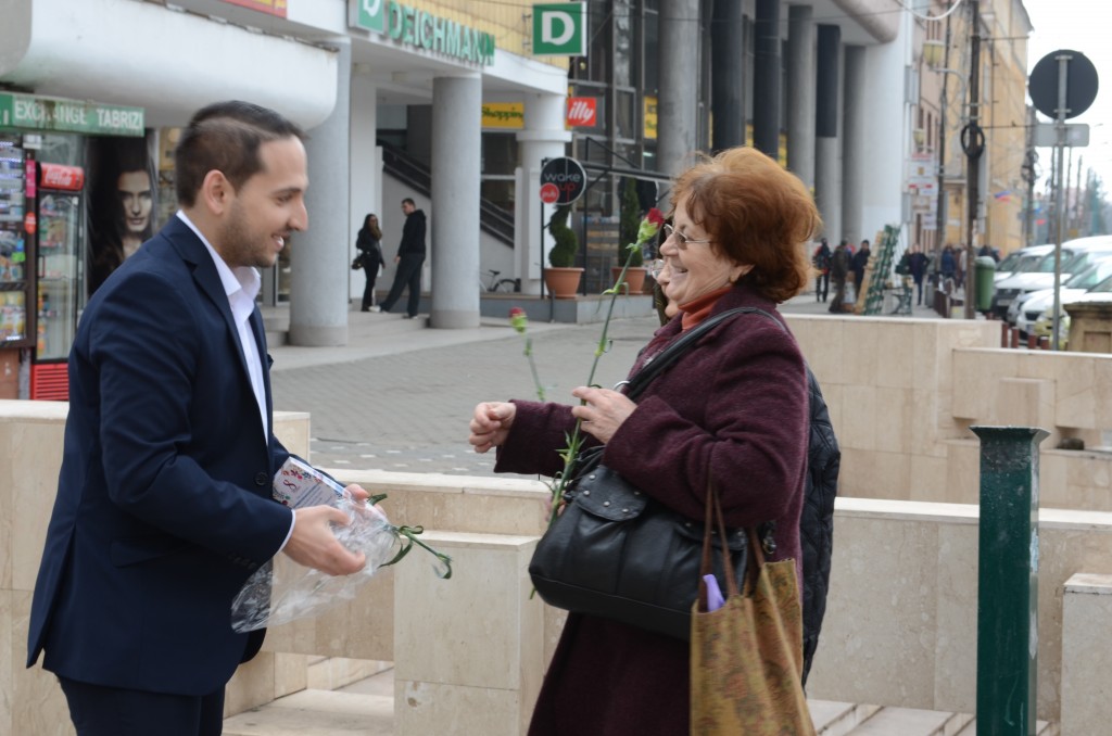 Organizaţia de tineret a ALDE Timişoara (TLDE) alături de seniori ai partidului au împărţit flori cu prilejul Zilei de 8 martie.