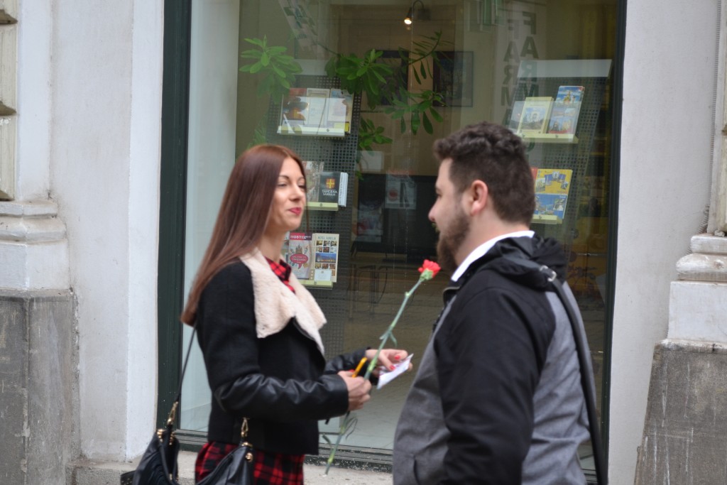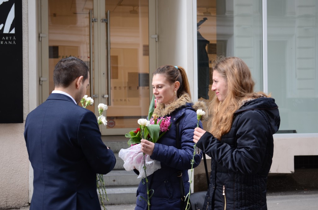 Doamnele și domnișoarele care au trecut ieri la ora 12 prin zona centrală a Timișoarei au fost întâmpinate cu flori.