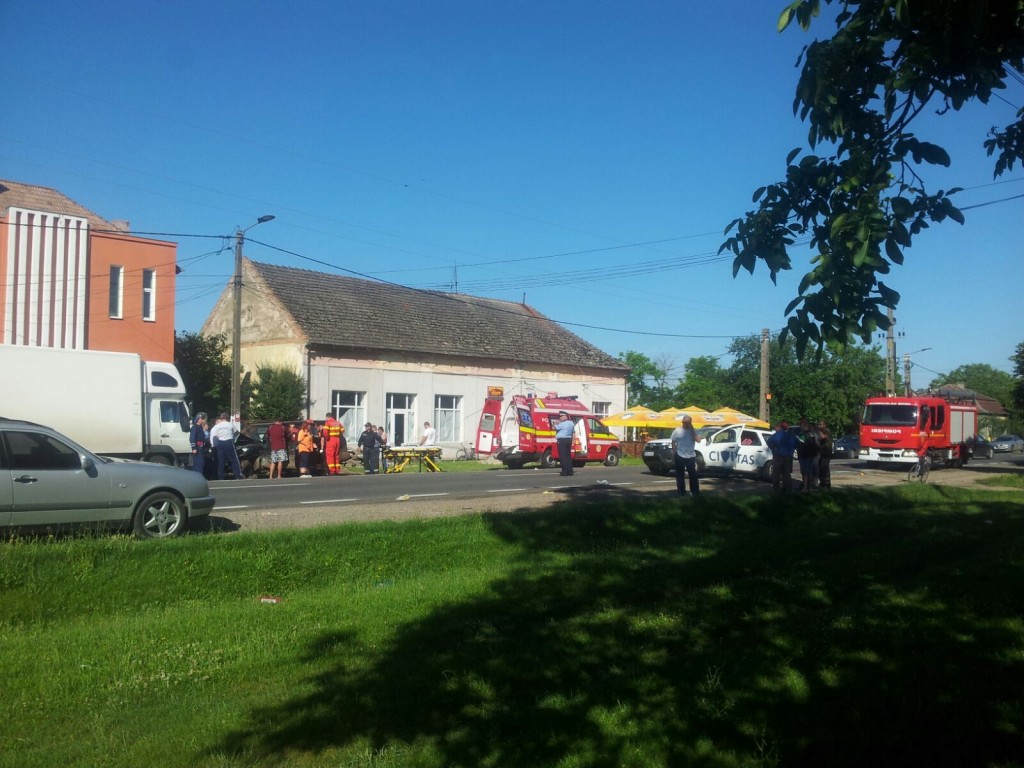 La locul accidentului s-au deplasat, din partea Stației de Pompieri Sânnicolau Mare, o autospecială dotată cu modul de descarcerare, o ambulanță SMURD, o ambulanță SAJ, un ofițer și șapte subofițeri. La sosirea echipajelor s-a constatat faptul că în accident erau implicate două autoturisme, un autocamion și cinci persoane, dintre care două persoane au necesitat îngrijiri medicale fiind preluate de echipajele medicale sosite la locul accidentului.