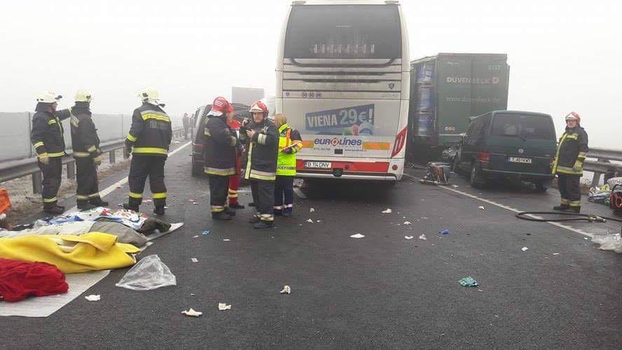 În accident a fost implicat și un autocar românesc. Trei persoane și-au pierdut viața și mai multe persoane au fost rănite.