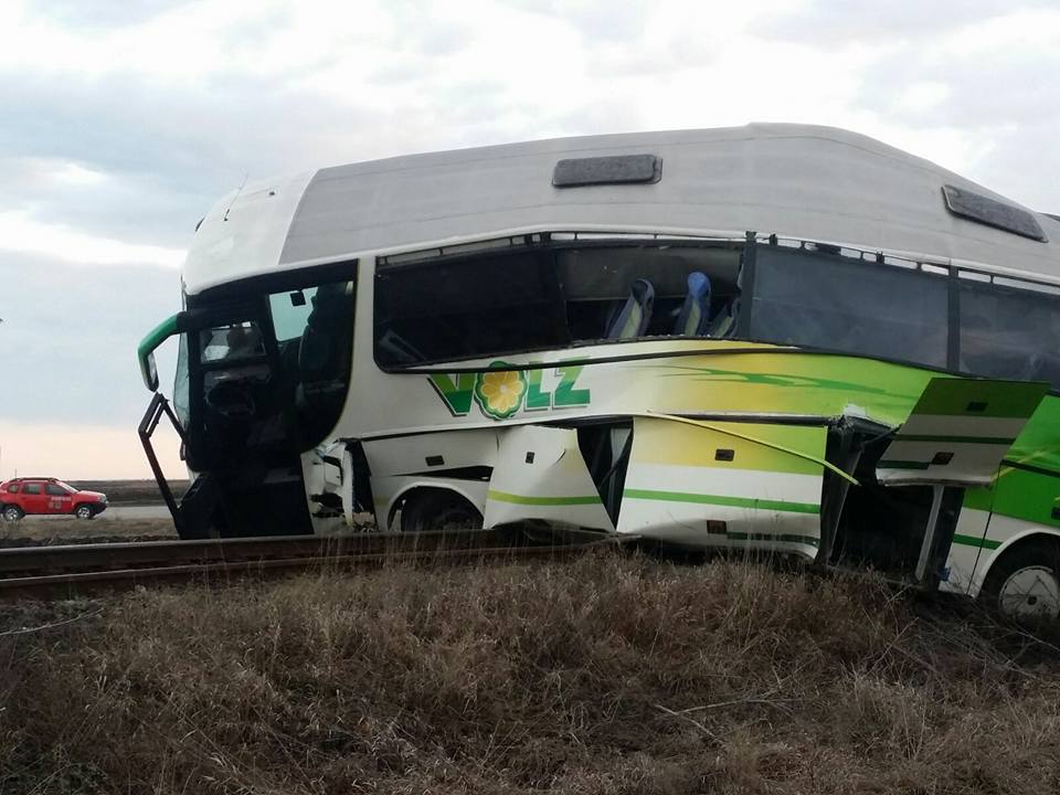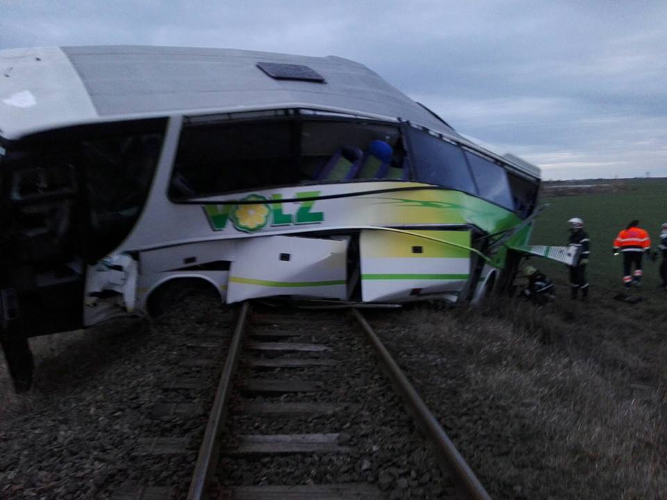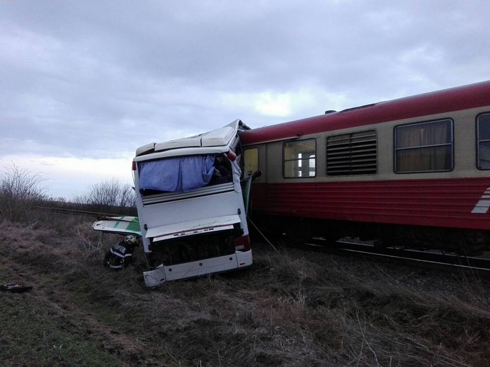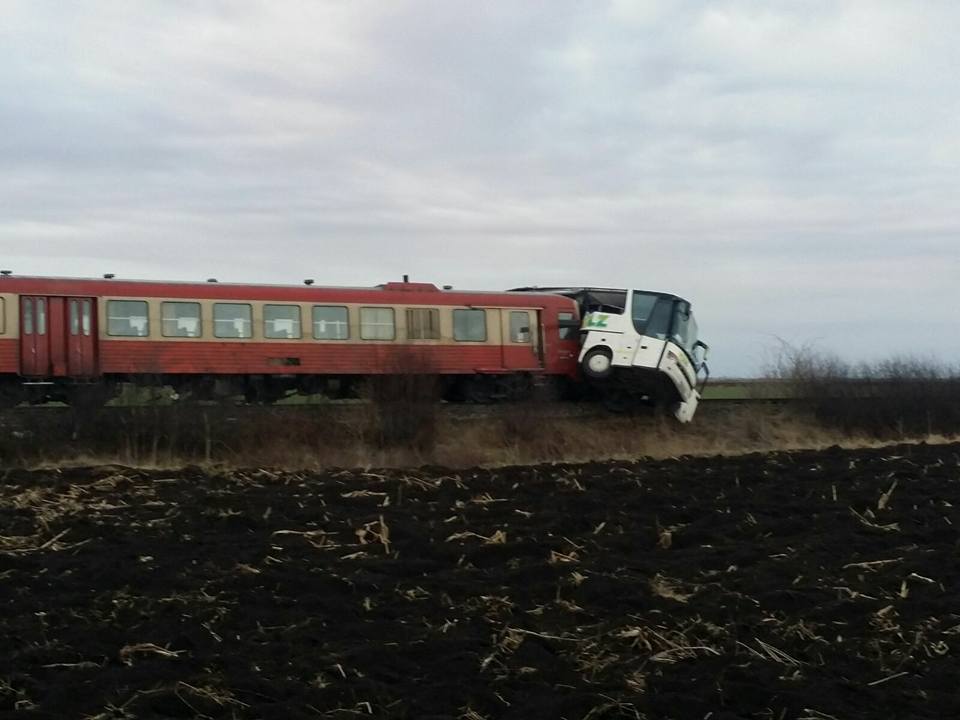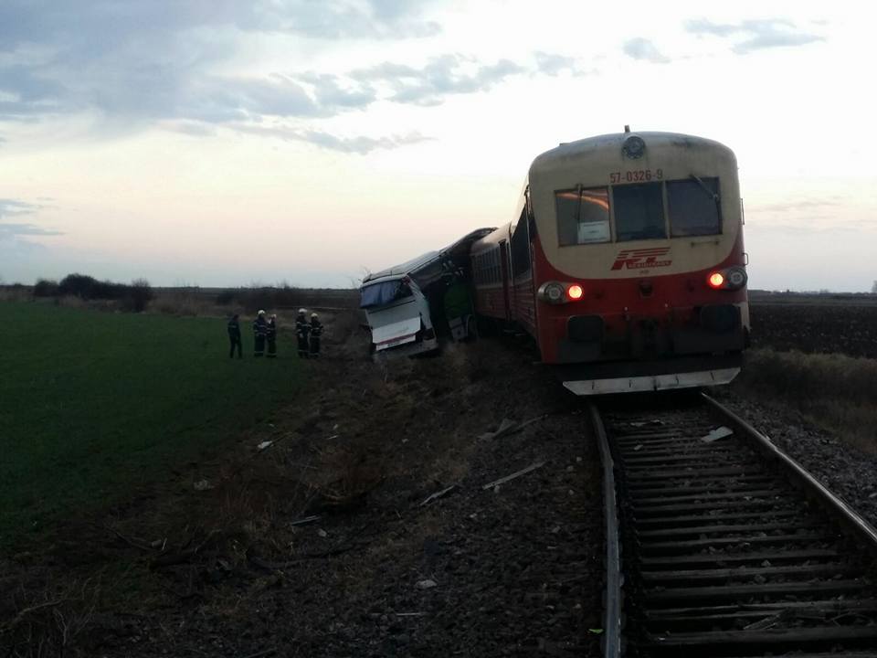 Accident grav feroviar în această dimineață în Timiș! Un autocar cu șase pasageri a fost spulberat de un tren Regiotrans 14315, în care se aflau două persoane, respectiv mecanicul și conductorul.