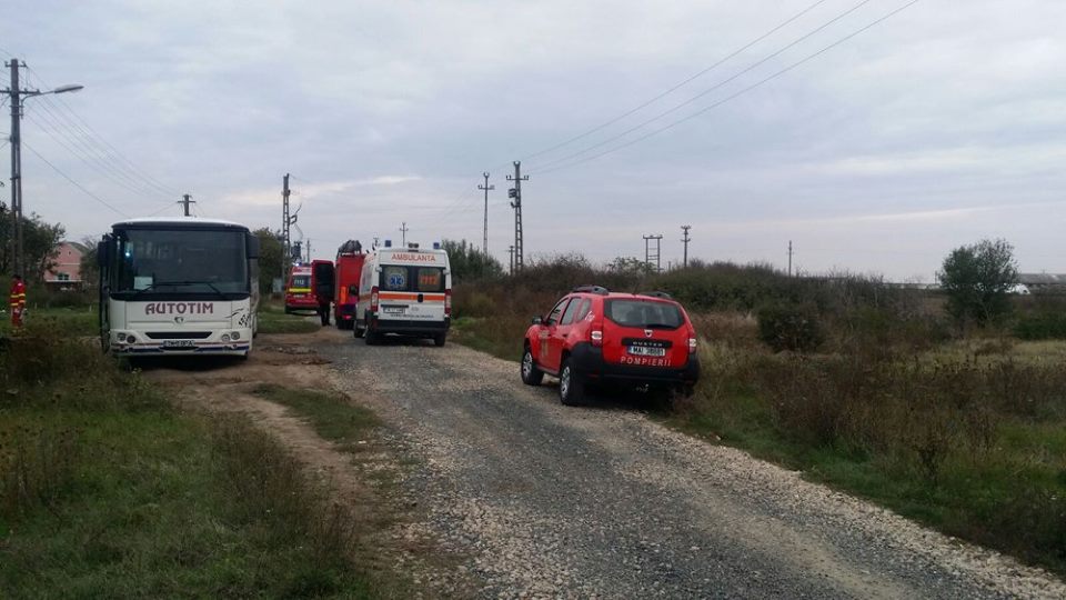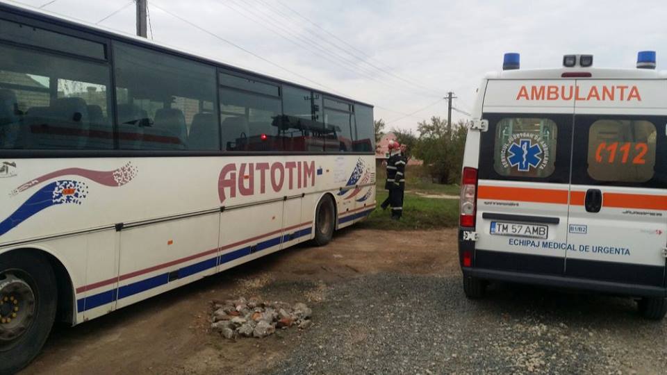 Inspectoratul pentru Situații de Urgență „BANAT” al județului Timiș a fost solicitat pentru a interveni în ajutorul unei persoane încarcerate sub un autobuz, în localitatea Cheglevici. La locul intervenției s-au deplasat o autospecială de lucru cu apă și spumă și modul de descarcerare, elicopterul SMURD, o ambulanță SMURD, o ambulanță SAJ, 1 ofițer și opt subofițeri.