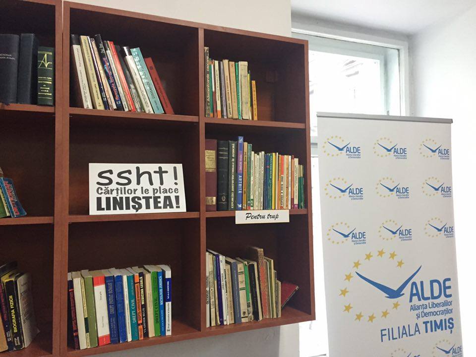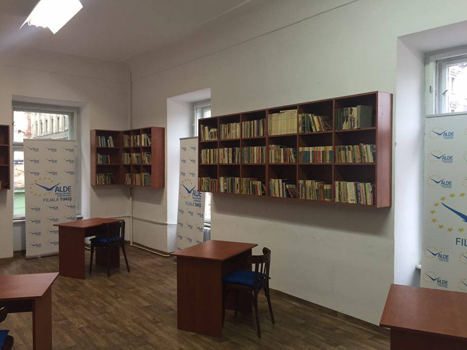 Idee inedită a ALDE Timiș! Reprezentanții formațiunii politice au realizat o bibliotecă în adevăratul sens al cuvântului. Aceasta este situată în Piața Libertății din Timișoara, acolo unde tinerii și nu numai, sunt invitați la un ceai sau la o cafea pentru a răsfoi cele aproximativ 3000 de volume de beletristică, filosofie, istorie, politică, science-fiction, enciclopedii sau cărți pentru copii.