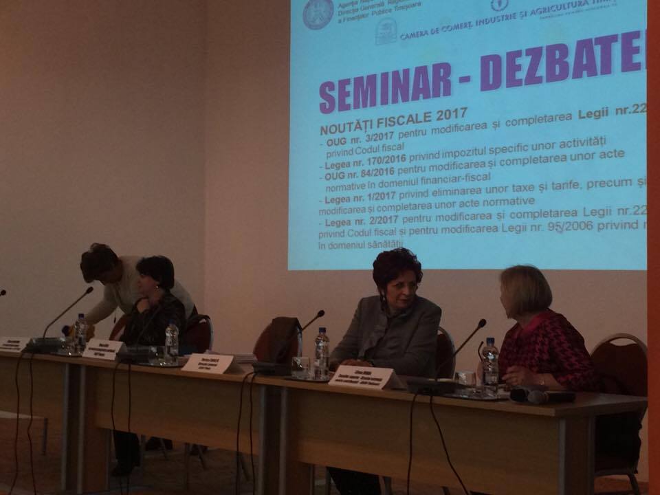 Au fost abordate diverse teme privind schimbările legislative din domeniu: modificările şi completările aduse prin Ordonanţa de Urgenţă a Guvernului nr. 3/2017 Legii nr. 227/2015 privind Codul Fiscal, legea nr. 170/2016 privind impozitul specific unor activităţi, Ordonanţa de Urgenţă a Guvernului nr. 84/2016 pentru modificarea şi completarea unor acte normative în domeniul financiar-fiscal, Legea nr. 1/2017 privind eliminarea unor taxe şi tarife, precum şi pentru modificarea şi completarea unor acte normative; Legea nr. 2/2017 pentru modificarea şi completarea Legii nr. 227/2015 privind Codul Fiscal şi pentru modificarea Legii nr. 95/2006 privind reforma în domeniul sănătăţii.