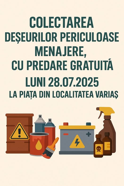 Luni, 28 iulie 2025, în Piața din localitatea Variaș, va fi amplasat un container special RETIM, în cadrul campaniei organizate împreună cu ADID Timiș.