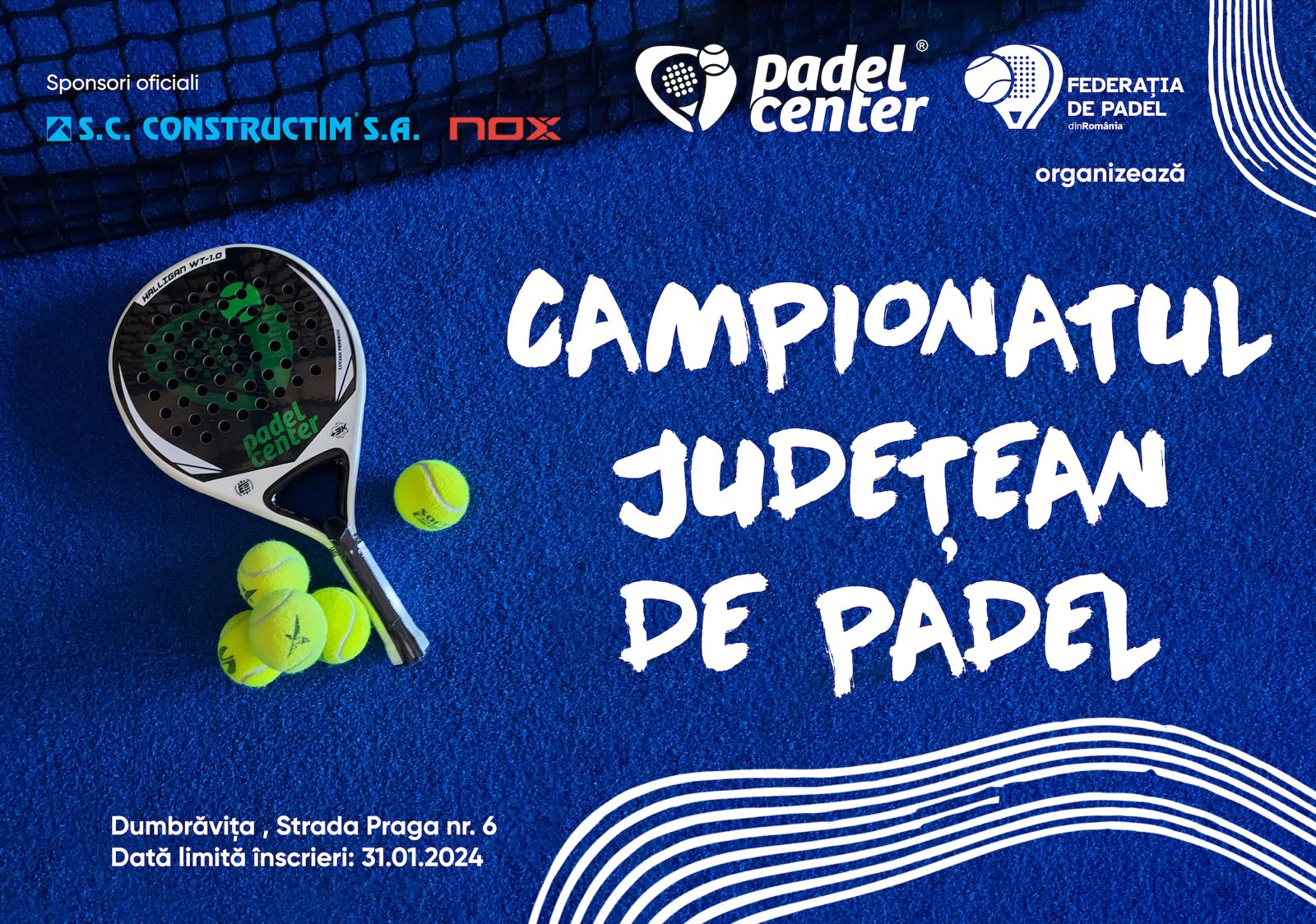Cu sprijinul sponsorilor principali, CONSTRUCTIM S.A., Padel Store și Nox Padel, se vor acorda premii pentru primele 3 locuri din fiecare nivel de joc.