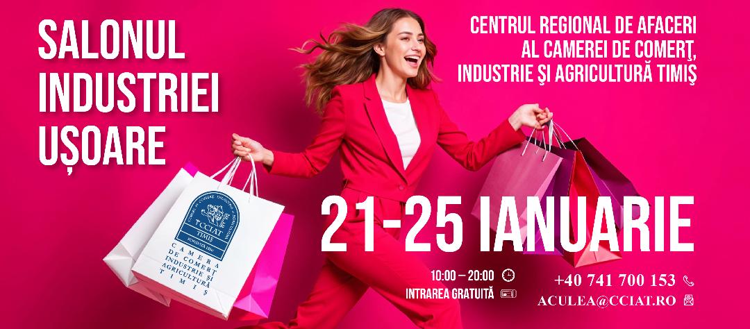 Camera de Comerț, Industrie și Agricultură Timiș invită timișorenii să înceapă anul cu stil, cumpărături inspirate și experiențe plăcute la SALONUL INDUSTRIEI UȘOARE, care va avea loc în perioada 21 – 25 ianuarie 2026, la Centrul Regional de Afaceri al CCIAT (Bd. Eroilor de la Tisa nr. 22).