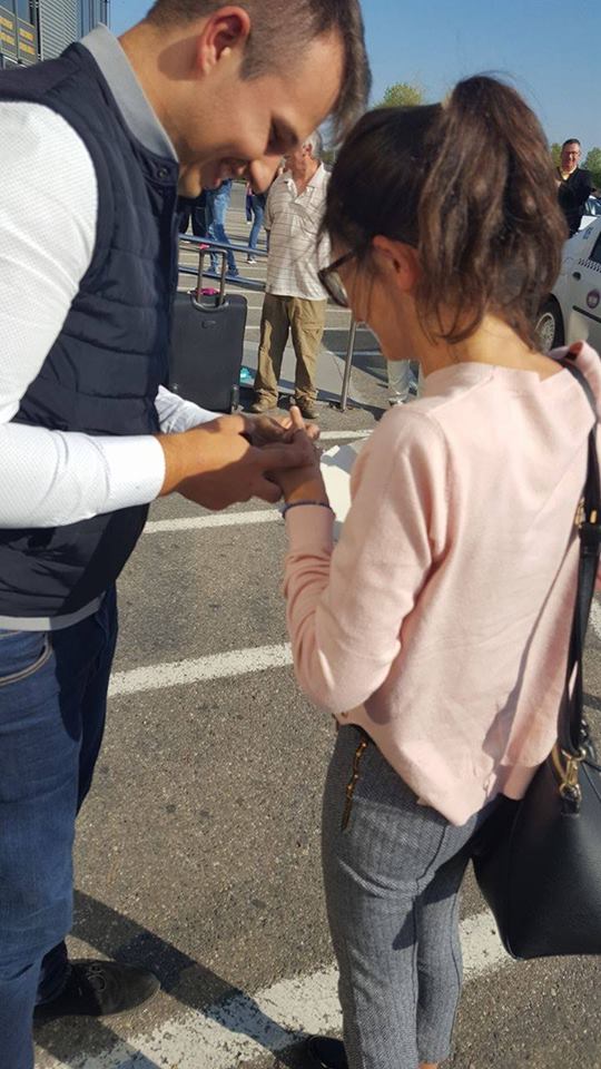 Un moment emoționant s-a petrecut ieri pe aeroportul din Timișoara, în apropierea avionului lui TraianVuia. Un tânărul pe nume Angelo a ales un mod inedit de a o cere în căsătorie pe iubia lui, Adelina. Momentul-surpriză a fost realizat cu ajutorul prietenilor și al părinților.