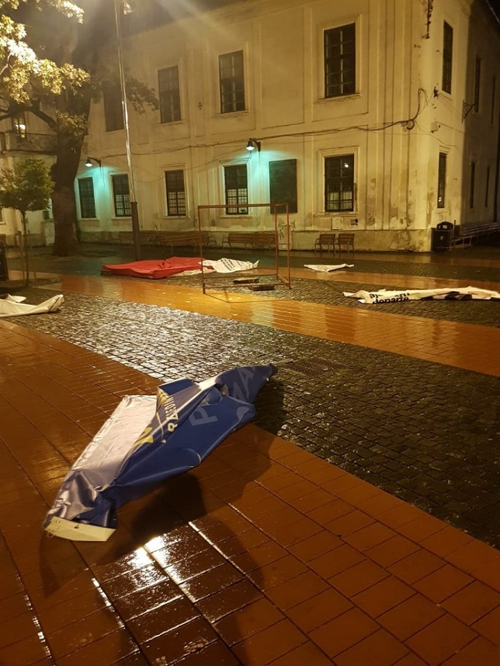 Un tânăr a făcut ravagii, azi-dimineață, în Piața Libertății. Bărbatul domiciliat în Drobeta Turnu Severin, județul Mehedinți, a vandalizat corturile electorale amplasate în Libertății. Polițiștii l-au văzut pe camerele de supraveghere și au intervenit.