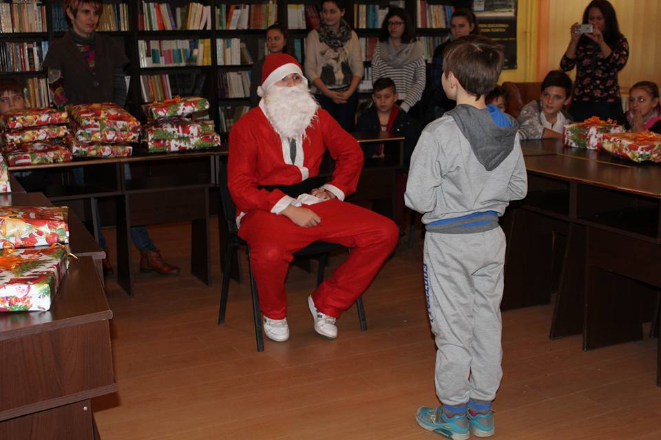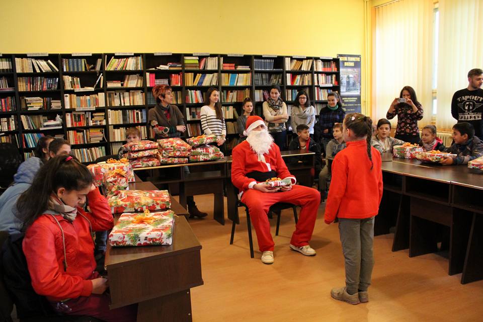 Cluburile Rotaract și Interact Buziaș, cu sprijinul seniorilor de la Rotary Buziaș și ajutați de Moș Crăciun au dăruit astăzi cadouri unui număr de 21 de elevi din clasele I-IV, copii ce provin din familii foarte sărace. “Dascălii de la școală ne-au dat o listă cu copiii nevoiași și noi am pregătit câteva cadouri pentru ei. Ne-am bucurat să îi vedem zâmbind. Unul dintre copii a spus că a primit exact ce-și dorea. Era un stilou foarte frumos, el nu avea nici măcar un stilou cu care să scrie”, spune Diana Hudrea, președintele Rotaract Buziaș.