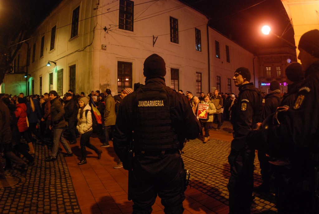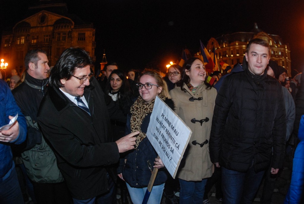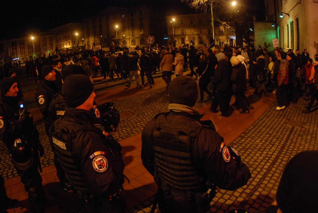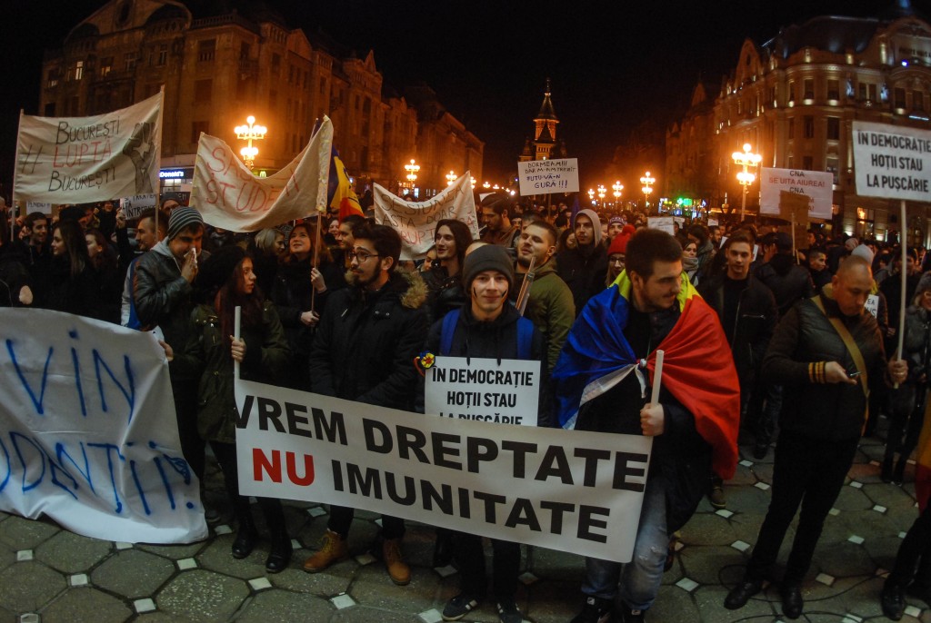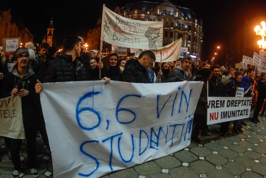 Astfel, manifestanții alături de studenți au pornit în marș la ora 17 din Complexul Studențesc, îndemnând să li se alăture toți timișorenii…“Dacă vă pasă, ieșiți din casă!”,“Să vă fie frică, studenții se implică!”,“Vrem Justiție, nu corupție”, “Legea este pentru toți, nu făcută pentru hoți!”, „Rușine, rușine să vă fie!”, etc.