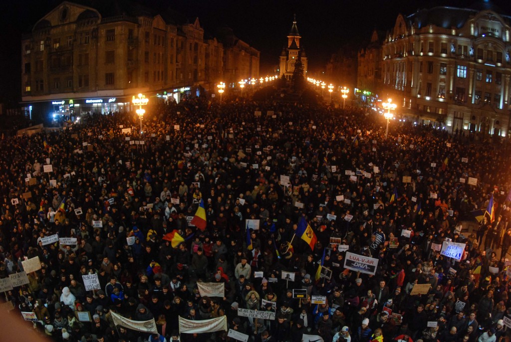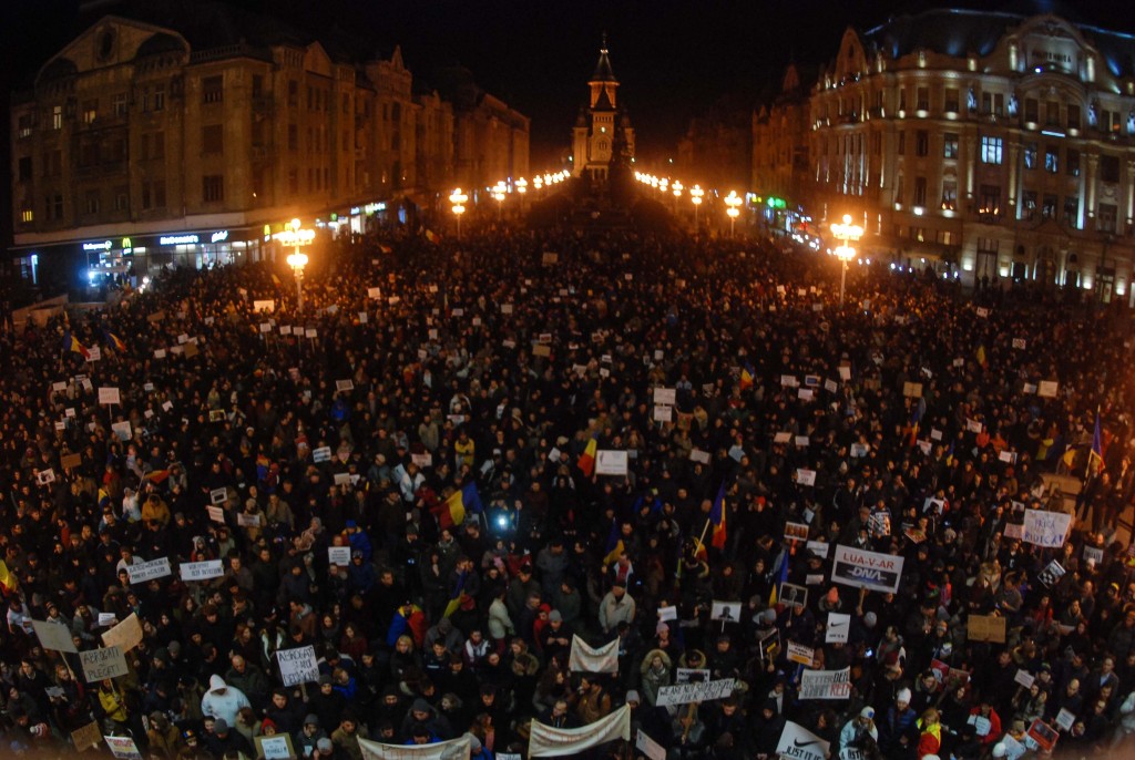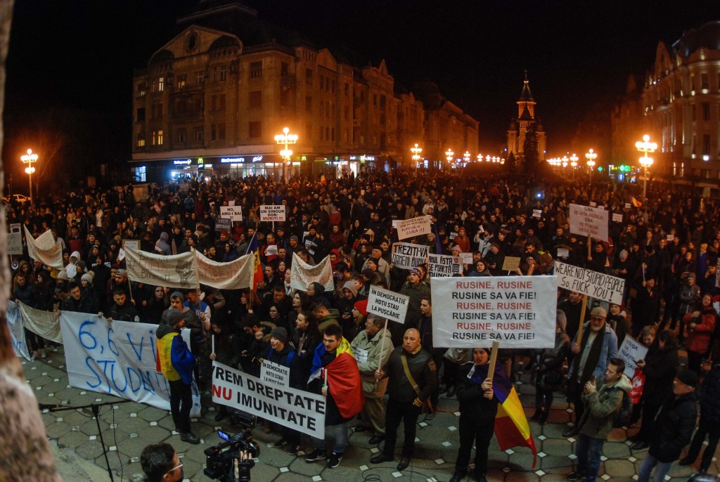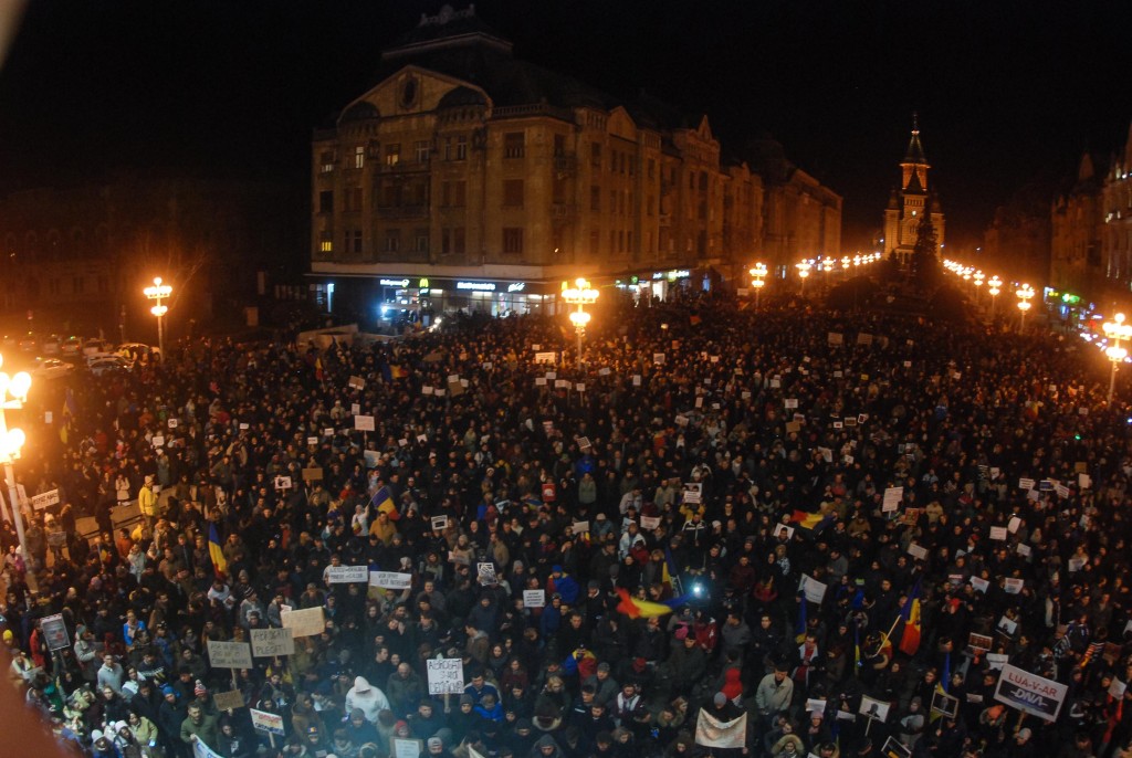 Bănățenii nu renunță la protest! Și în această seară, pentru a treia oară, s-au reunit în centrul orașului pentru a cere demisia Guvernului Grindeanu.