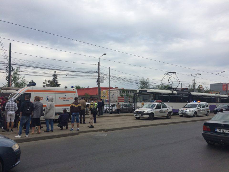 Clipe de groază în această după-amiază pentru o femeie de 30 de ani din Timișoara. Aceasta a fost lovită de tramvai.