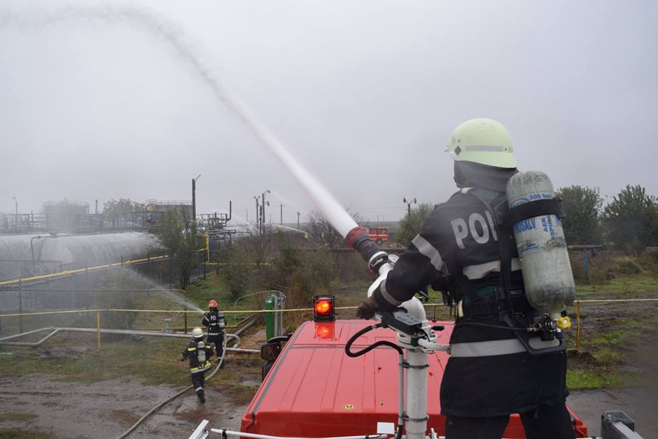 Incendiu urmat de explozie la OMV PETROM S.A. Stația de Dezbenzinare Călacea! La locul intervenției s-au deplasat o autospecială de primă intervenție și comandă, un punct de comandă mobil, 4 autospeciale de lucru cu apă și spumă, 2 autospeciale de transport victime multiple, o autospecială de descarcerare, 9 ofițeri și 31 de subofițeri, un echipaj SPSU și un echipaj SVSU.