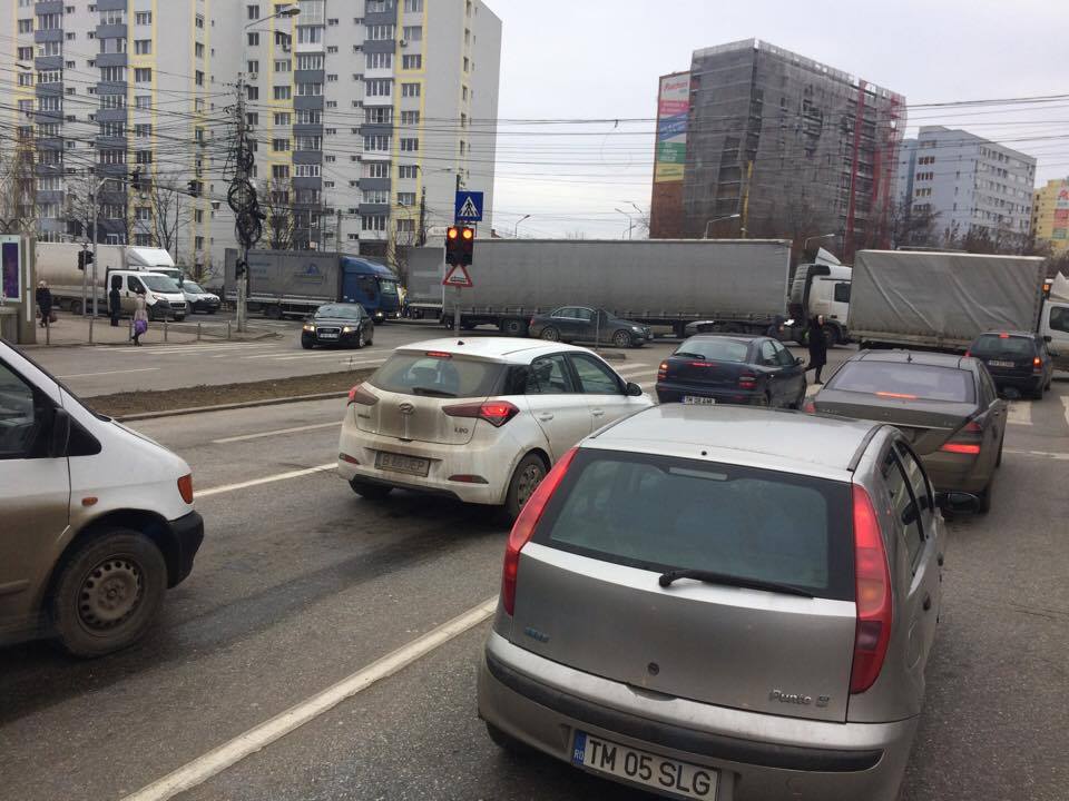 S-au format cozi kilometrice din cauză că semafoarele nu au fost sincronizate, iar TIR-urile care veneau dinspre bulevardul Rebreanu au blocat intersecția în Șagului. Haosul provocat i-a facut pe șoferi și pietoni să-și piardă cumpătul. Nici la această oră traficul nu e fluidizat. Timișorenii care circulă în Calea Șagului au de așteptat minute bune în șir în trafic.