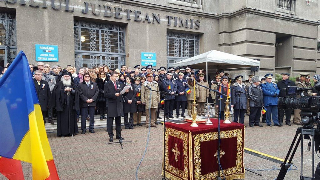 Ziua Națională a României i-a făcut pe oameni să iasă din casă, în pofida vremii, pentru a asista la manifestările din fața Palatului Administrativ din Timișoara. Evenimentele au început dimineață, de la ora 10.30, când a avut loc un ceremonial militar-religios, salutarea drapelelor de luptă și intonarea imului de stat.