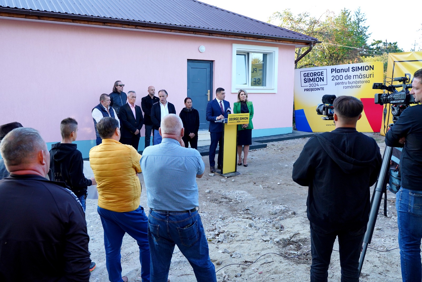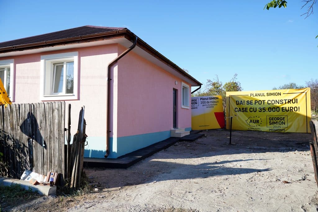 Președintele AUR, George Simion, a prezentat luni, în satul Brăniștari, comuna Călugăreni, din județul Giurgiu, casa construită în 12 zile pentru o familie de oameni amărâți cărora le-a ars locuința într-un incendiu. Liderul AUR a spus că prin acest proiect a demonstrat criticilor că se poate construi o locuință la 35.000 de euro.