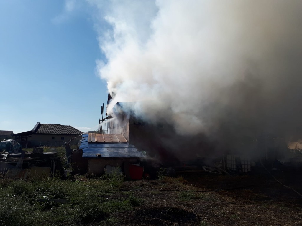 Incendiu de proporții în Timiș, la o locuință. Flăcările au pornit de la o anexă și s-au extins spre casa unei familii din Săcălaz.