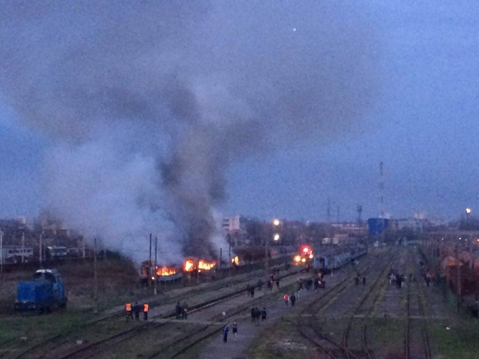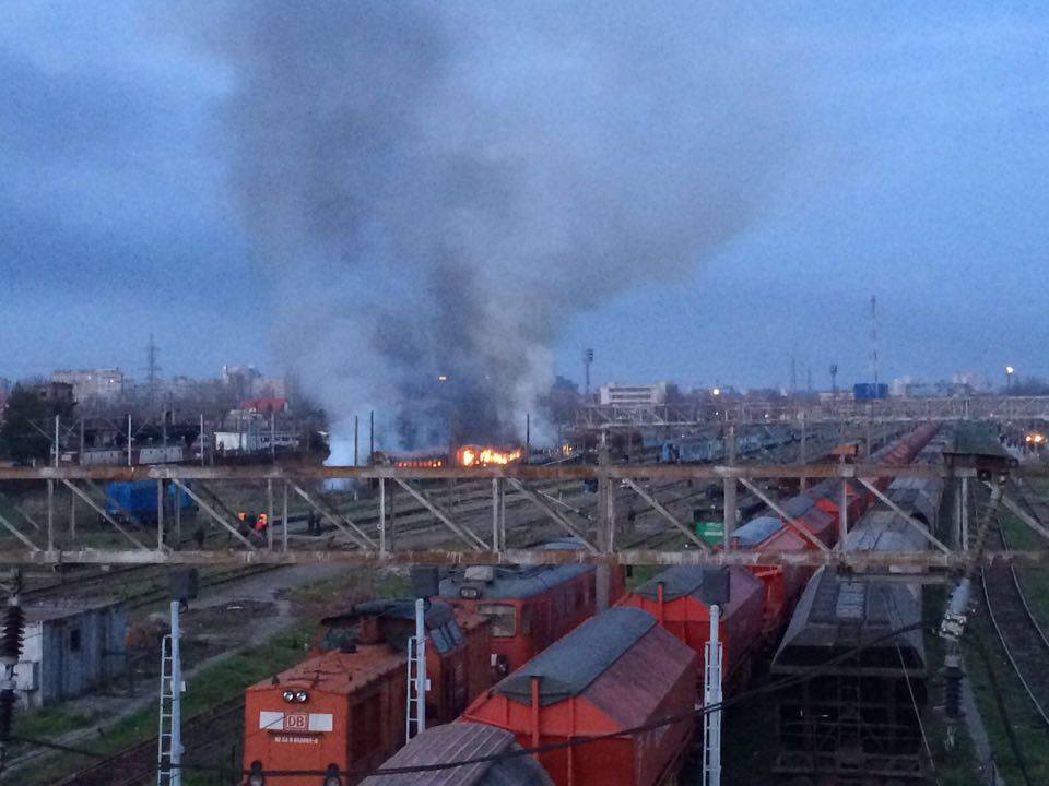 Incendiu devastator în zona Gării de Nord din Timișoara! Un vagon dezafectat a luat foc în întregime și alte trei vagoane din vecinătate au fost afectate.