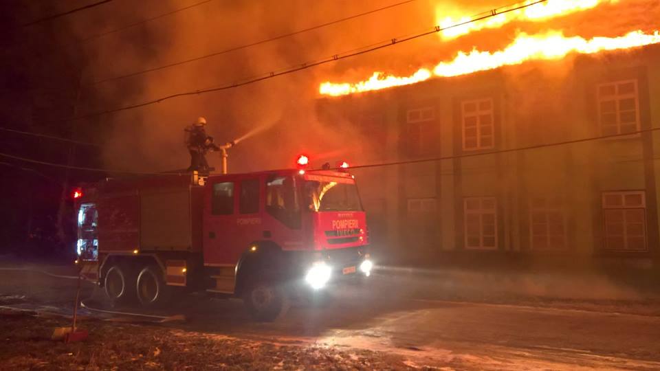 Intervenție foarte dificilă, în plină desfășurare, a pompierilor Inspectoratului pentru Situații de Urgență „BANAT” al județului Timiș pentru lichidarea unui incendiu izbucnit la un pavilion al spitalului din localitatea Gătaia.