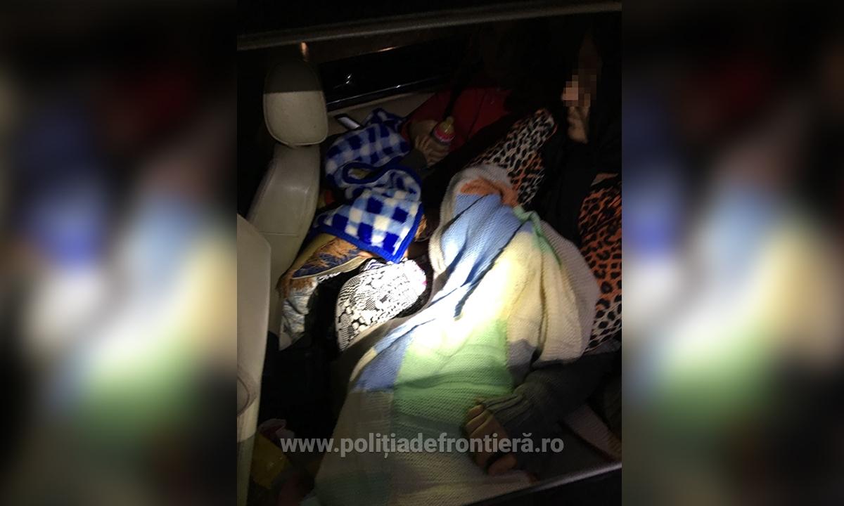 La controlul autovehiculului, poliţiştii de frontieră au descoperit ascuns printre bagajele aflate intre scaunele din spate, acoperit cu o pătură, un minor în vârstă de 9 luni, fiul celor doi cetăţeni români. Câteva minute mai târziu, în acelaşi punct de frontieră, s-a prezentat pentru efectuarea formalităţilor  un cetăţean român în vârstă de 41 ani, alături de care se aflau o femeie și un bărbat, toţi domiciliaţi pe raza judeţului Dolj, care călătoreau cu un microbuz marca Ford Tranzit. La controlul mijlocului de transport, poliţiştii de frontieră au descoperit ascunsă între scaunele microbuzului, acoperită cu articole de îmbrăcăminte, o fetiţa în vârstă de 3 luni, fiica celor doi pasageri din microbuz.