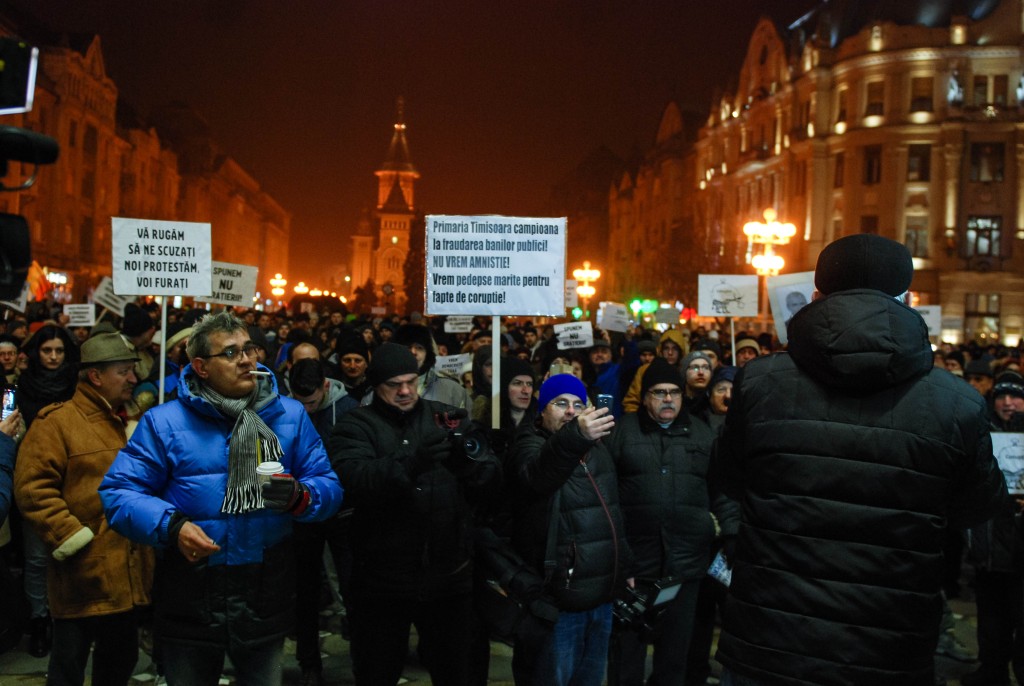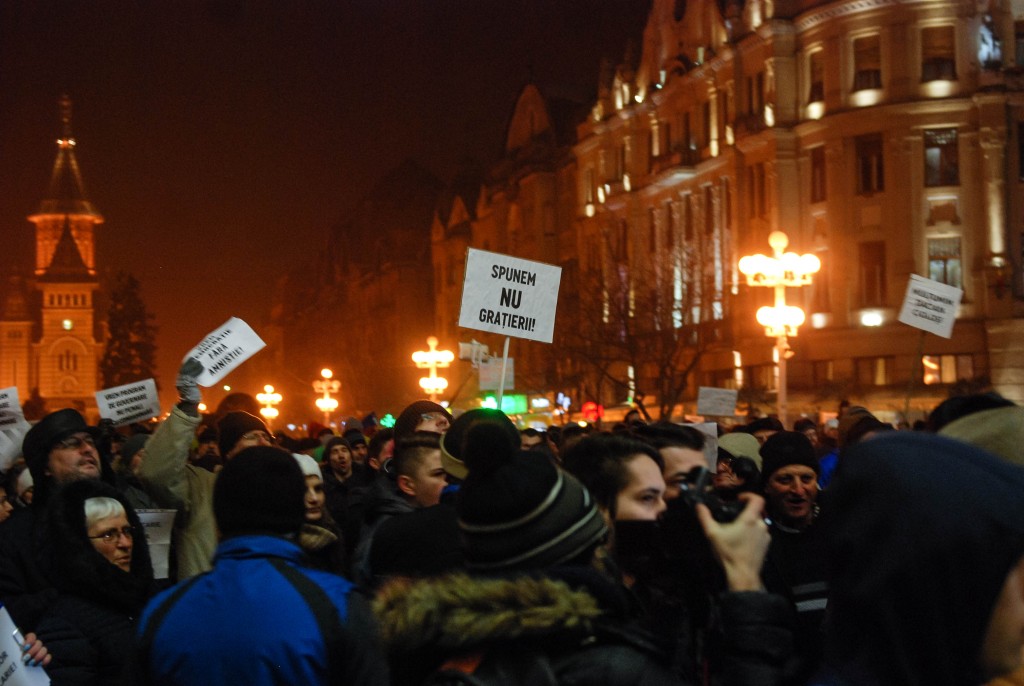 Timișorenii au ieșit duminică seara din nou în stradă, pentru a treia oară!  Aproximativ cinci mii de protestatari s-au întâlnit de la ora 18 în Piața Victoriei pentru a protesta împotriva ordonanțelor care prevăd aministia și grațierea. “Spune Nu graţierii!”, “Vrem program de guvernare nu penali cu condamnare!”, “Nu vrem amnistie, vrem pedepse mărite pentru fapte de corupţie!” sau “Păzea gândim!”…. Sunt doar câteva dintre lozincile de la mitingul de ieri seară.