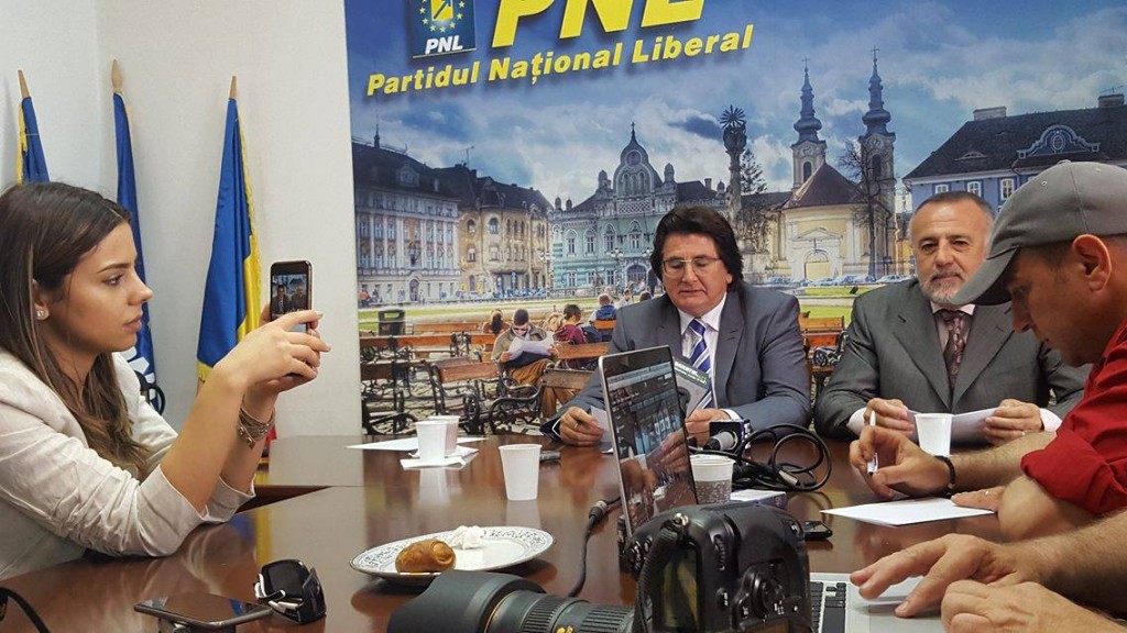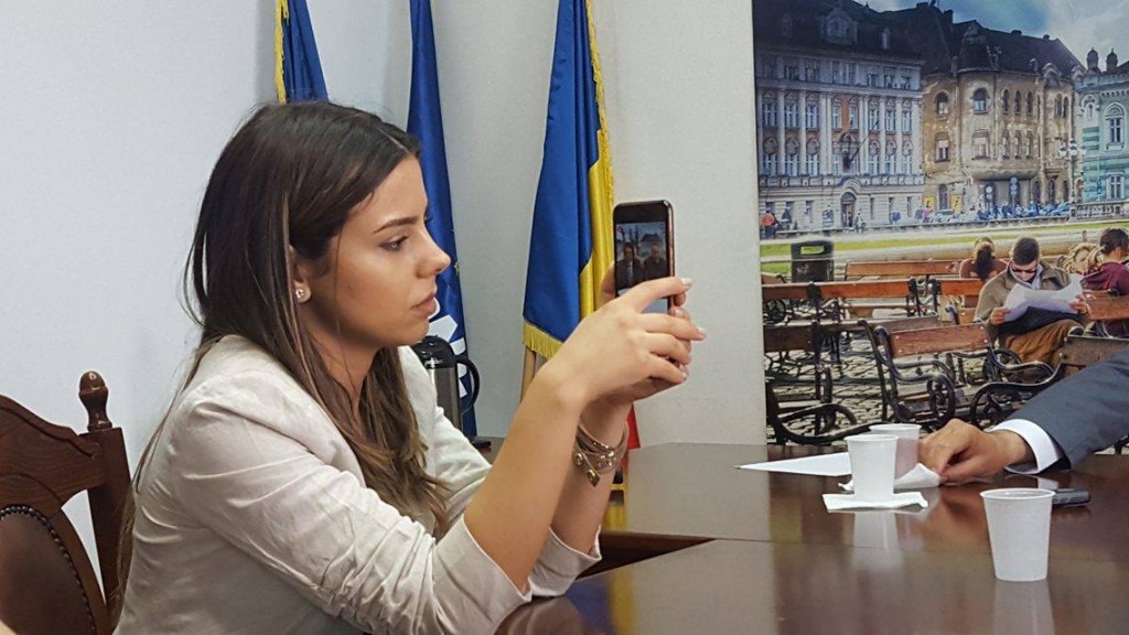 Situație comică astăzi la sediul PNL Timiș! Una dintre “jurnalistele” de la Televiziunea Facebook a Primăriei Timișoara a fost utilizată pe post de… suport pentru telefonul mobil la conferința de presă a co-președintelui PNL Timiș, Nicolae Robu.