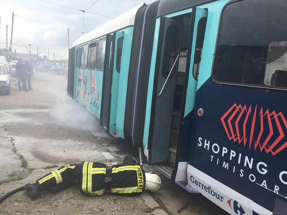Inspectoratul pentru Situatii de Urgență Timiș a fost anunțat la ora 15.15, referitor la producerea unui incendiu la compartimentul motor al unui tramvai aflat pe strada Avram Imbroane. La locul intervenției s-a deplasat o autospecială de lucru cu apă și spumă, un ofițer și 4 subofițeri. S-a acționat pentru localizarea și lichidarea incendiului în faza incipientă a acestuia. În momentul inițierii incendiului, în tramvai nu existau călători.