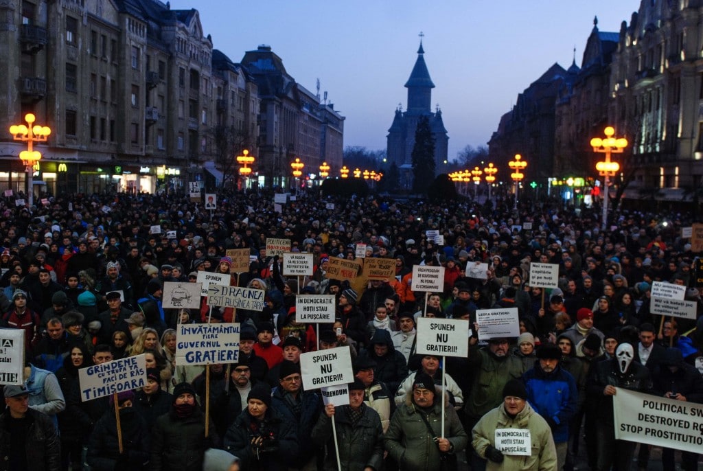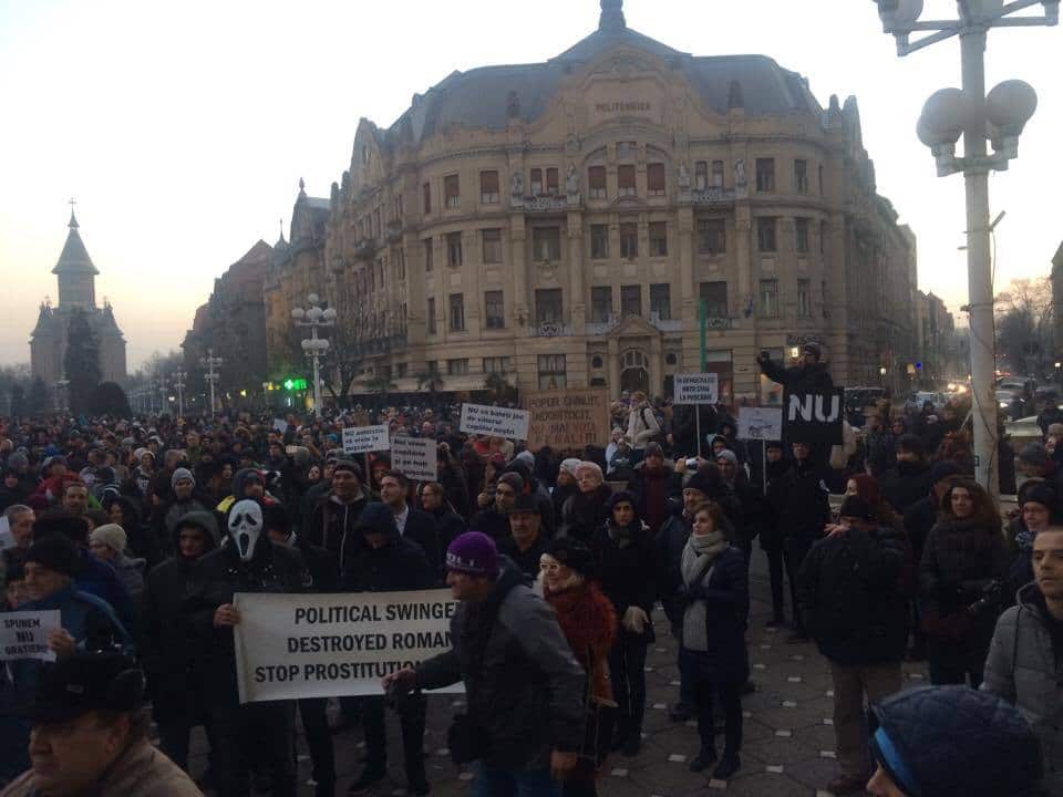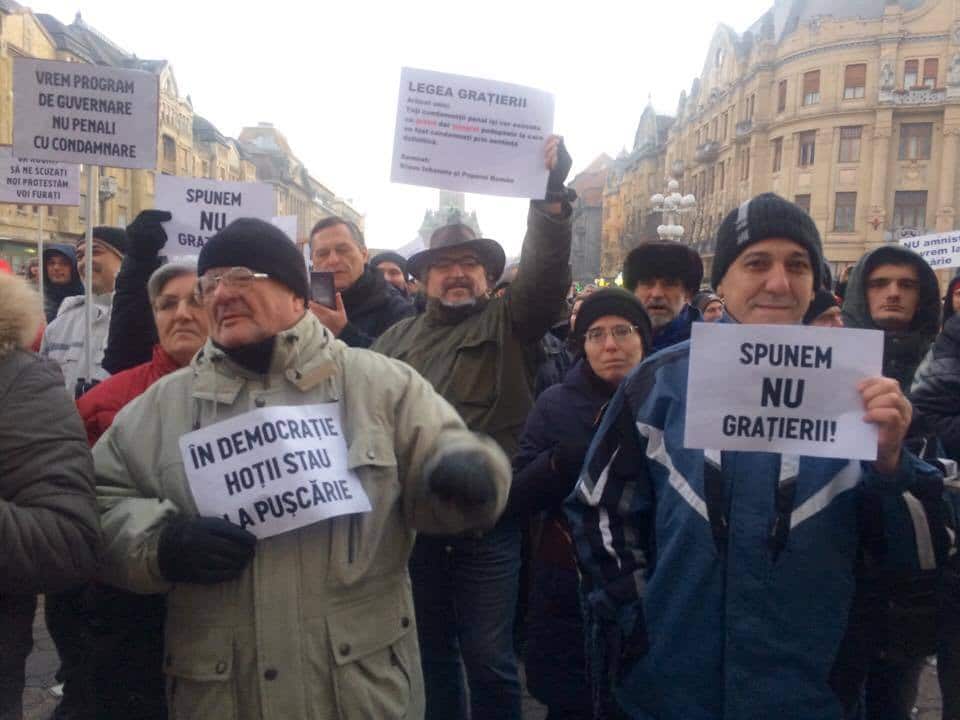 Timișorenii au ieșit duminică seara din nou în stradă. Aproape opt mii de protestatari s-au întâlnit de la ora 17 în Piața Victoriei pentru a protesta împotriva ordonanțelor care prevăd aministia și grațierea. “Jos Guvernul”,“Spune Nu graţierii!”, “Vrem program de guvernare nu penali cu condamnare!”, “Nu vrem amnistie, vrem pedepse mărite pentru fapte de corupţie!” sau “Păzea gândim!”…. Sunt doar câteva dintre lozincile de la mitingul de ieri seară.