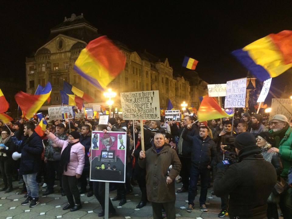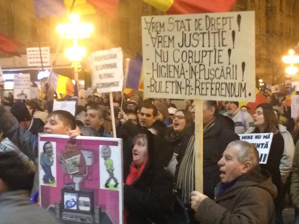 Cu toate că premierul Sorin Grindeanu a abrogat ieri Ordonanța grațierii și amnistiei, oamenii au ales să se strângă din nou în Piața Victoriei. Până acum aproximativ 3000 de persoane au venit la protest.“Dacă vă pasă, ieșiți din casă!”,“Să vă fie frică, studenții se implică!”,“Vrem Justiție, nu corupție”, “Legea este pentru toți, nu făcută pentru hoți!”, “Rușine, rușine să vă fie!”, etc.