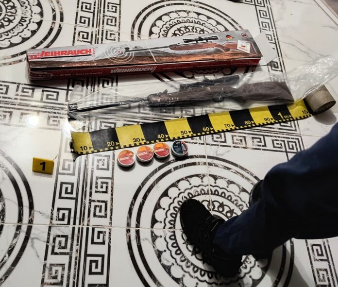 În urma perchezițiilor, au fost descoperite și ridicate 2 arme lungi neletale cu aer comprimat, calibru 4,5 mm, deținute fără drept, supuse autorizării; 5.000 de bucăți de alice, calibru 4,5 mm (muniție aferentă armelor) și un dispozitiv de tip asomator, împreună cu 100 de cartușe aferente.