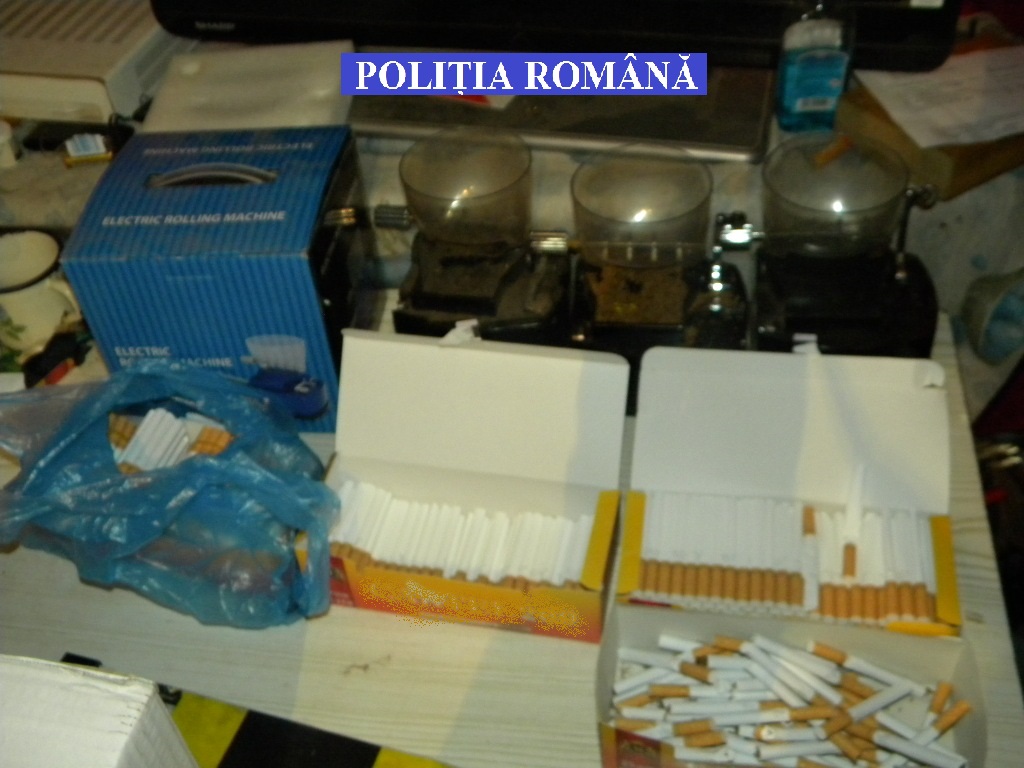 Peste 70 de kg de tutun prelucrat pentru confecționarea țigaretelor, 5 mașini electronice de injectat tutun, 2 mașini de tocat tutun, 3 unități de calculator, 2 laptopuri și documente falsificate au fost ridicate de polițiști în urma perchezițiilor de azi dimineață.
