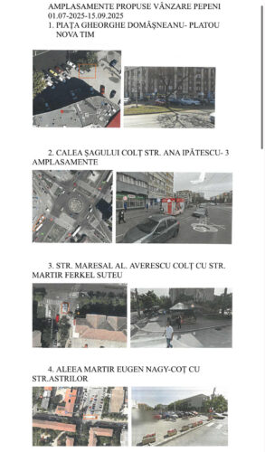 Pentru desfășurarea acestui eveniment, au fost stabilite următoarele 19 amplasamente pentru vânzarea pepenilor în municipiul Timișoara:
