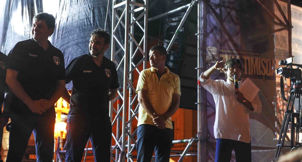 Pe scena din Piața Victoriei au urcat pe rând, de la ora 20.00, Nicoleta Nucă, Liviu Teodorescu, Guess Who și Alexandra Stan. Sute de tineri, printre care și sportivii echipei de handbal din Timișoara, au luat parte la spectacolul din centrul Timișoarei. La final, timișorenii au avut parte și de tradiționalul foc de artificii.
