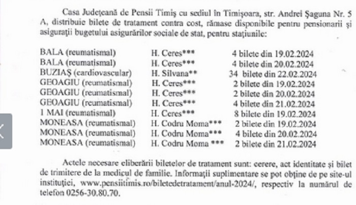 Acasă Social Prima serie de bilete pentru tratament rezervate pensionarilor SocialStiri LocaleStiri TimisUtile Prima serie de bilete pentru tratament rezervate pensionarilor De către Matei Alexandru - 6 februarie 2024 Iată lista biletelor de tratament, contra cost, disponibile pensionarilor şi aferente Seriei 1, cu incepere din 19. 02.2024. ARTICOLE SIMILAREDE LA ACELAȘI AUTOR Social Bilete de tratament disponibile la Casa de Pensii Timiş Social Bilete la tratament balnear pentru pensionarii din Timiș Social Pensionarii au liber la relaxare LĂSAȚI UN MESAJ Renunțați la răspuns Vă rugăm să introduceți comentariul dvs.! Introduceți aici numele dvs. Ați introdus o adresă de e-mail incorectă! Vă rugăm să introduceți adresa dvs. de e-mail aici Salvați numele meu, adresa de e-mail și site-ul web în acest browser pentru data viitoare i comentariu. Δ