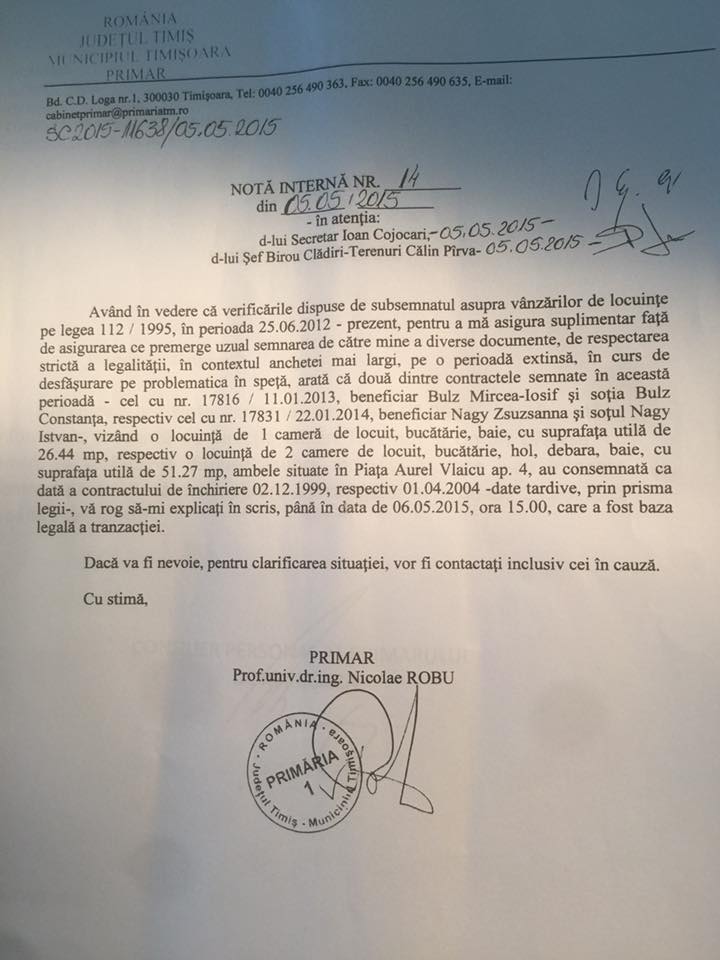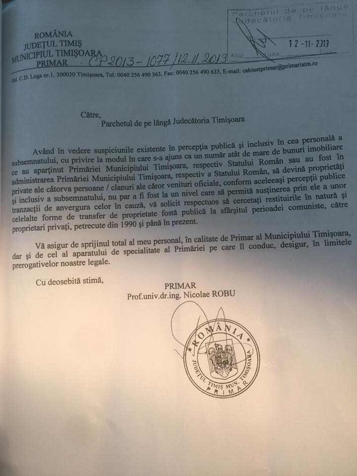 Edilul Timișoarei, Nicolae Robu vine din nou cu precizări în legătură cu dosarul în care este anchetat de Direcția Națională Anticorupție. Acesta este suspectat de procurorii anticorupție că a semnat două documente de vânzare-cumpărare a două imobile, din 967 investigate de D.N.A pe care exista semnatura sa de edil.