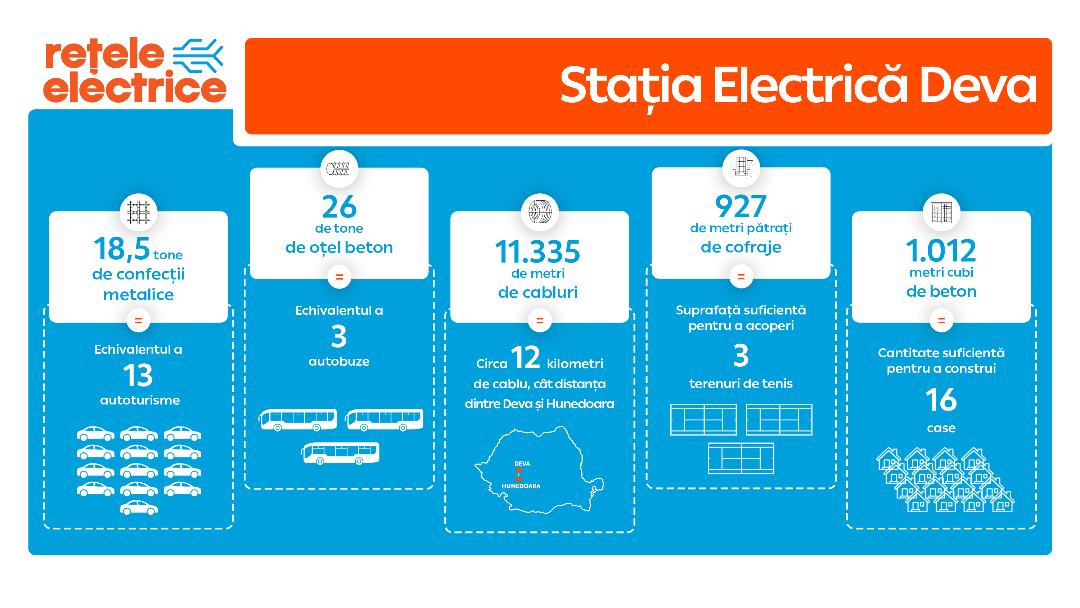 Rețele Electrice România, parte a grupului PPC în România, a finalizat lucrările de modernizare pentru stația 110/20kV IRUM, din municipiul Deva, pentru a eficientiza activitatea de distribuție a energiei electrice în zonă. Investiția, în valoare totală de peste 19 milioane lei a fost realizată integral din surse proprii, ca parte a strategiei companiei de a dezvolta rețeaua de distribuție a energiei electrice având în vedere principiile de calitate și reziliență.