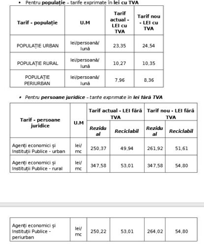 RETIM Ecologic Service S.A. informează toți utilizatorii serviciului de salubrizare (persoane fizice, asociații de proprietari/locatari, persoane juridice și instituții publice) din Zona 1 a județului Timiș că va avea loc o modificare a tarifelor de facturare, ca urmare a modificării tarifelor de la instalațiile de tratare.