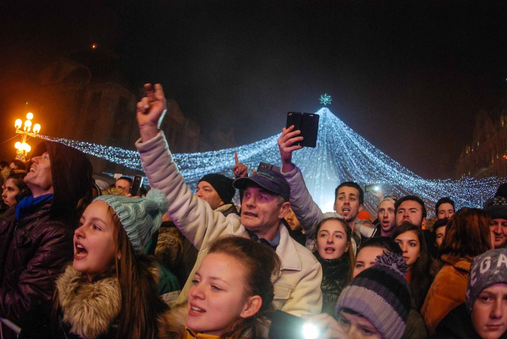 Mii de timișoreni au venit în centrul orașului să întâmpine anul 2017. Cu toate că afară era un frig de crăpau pietrele, oamenii au îndurat gerul alegând să petreacă Anul Nou în Piața Victoriei cu muzică, șampanie și foc de artificii. Petrecerea de Revelion a început la ora 20.00 cu un concert Geo Da Silva & Sean Norvis. Apoi, de la ora 22:00, a urcat pe scenă – ALPHA Team, 22.00 – Cobzality. Momentul cel mai așteptat a fost concertul lui Ştefan Bănică jr. Artistul a urcat pe scenă, de la ora 23.00.