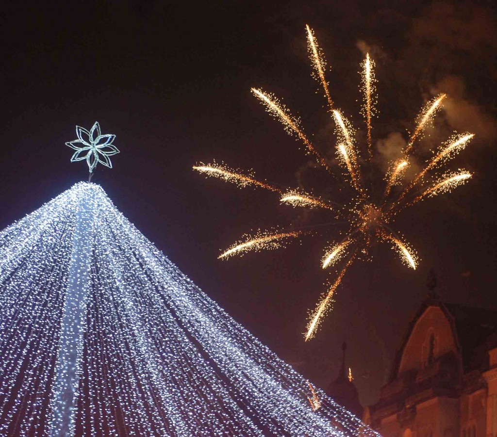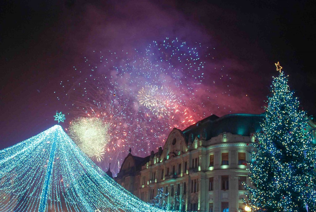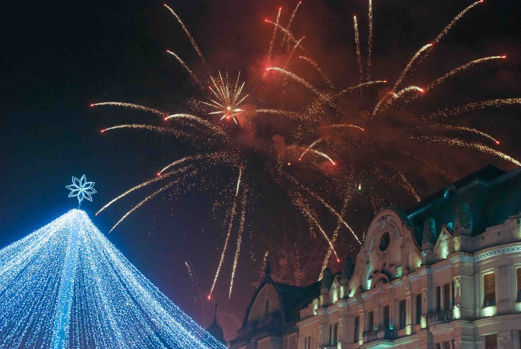 Numărătoarea inversă de la miezul nopții a culminat cu un spectacol de foc de artificii.