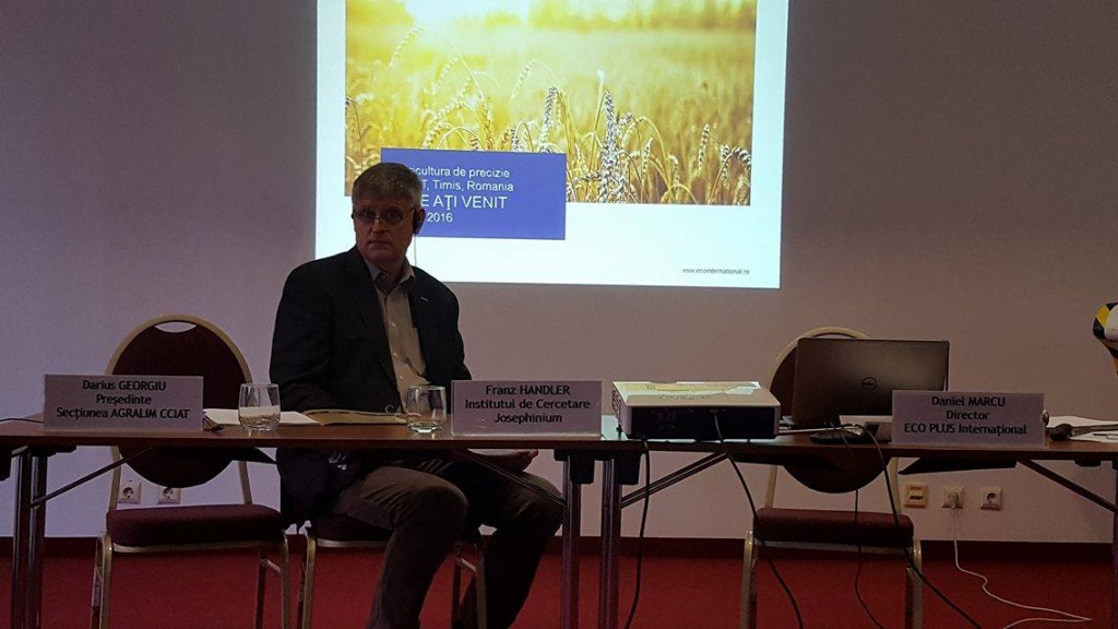 Franz Handler, reprezentant al Institutului de Cercetare Josephinum din Austria, a prezentat conceptul inovator de precize farming, ce implică monitorizarea prin satelit a recoltelor. Prezentarea va fi urmată de discuții bilaterale între firmele implicate, scopul întâlnirilor fiind acela de a oferi o perspectivă clară asupra noilor tehnologii din domeniul agriculturii, cu accent pe găsirea partenerilor de afaceri potriviți. „Ne bucurăm să găzduim astăzi acest eveniment. Dorim să creem un parteneriat de afaceri, punte de legatură, între firmele din Austria care au investit în agricultură, au ajuns la tehnologia viitorului. Ideea este ca firmele din domeniul agriculturii din România și din Timiș să profite de acest avantaj tehnologic pe care l-au dobândit în ultimii ani. Există de la diverse utilaje și tehnologii ultramoderne care îi ajută pe agricultori să crescă randamentul, producția. Un spectru foarte larg de produse”, spune Daniel Marcu, reprezentant Agenția Economică a landului Austria inferioară în România.