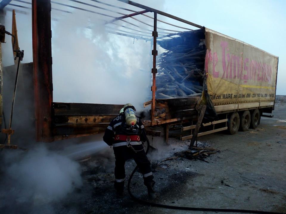 La locul intervenției s-au deplasat 2 autospeciale de lucru cu apă și spumă, 1 ofițer și 8 subofițeri. La sosirea pompierilor militari incendiul se manifesta cu flacără deschisă la capul tractor și la încărcătura de lemne. Pompierii militari au localizat și lichidat incendiul, în total arzând aproape jumătate din încărcătură și capul tractor în totalitate.